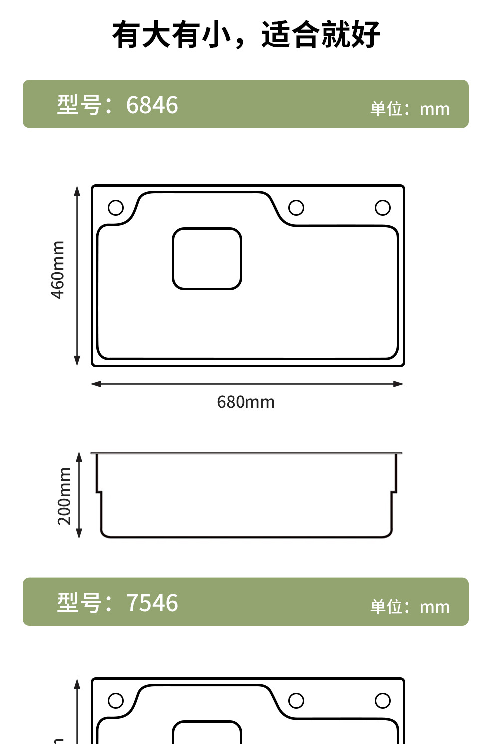 仕様 68x46CM,75x46CM,80x46CM