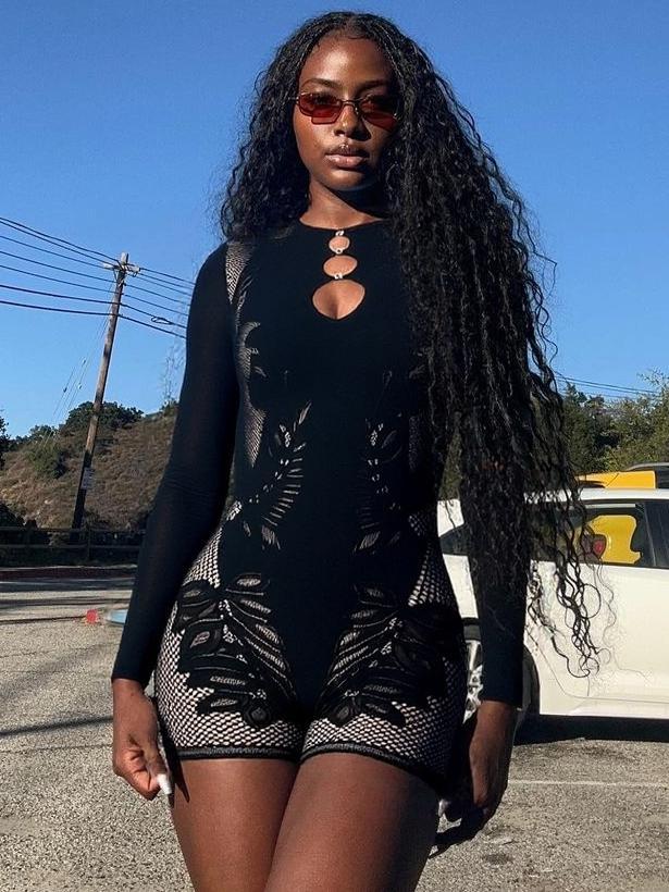 Amazonヨーロッパとアメリカのクロスボーダー25年夏人気レディースレース中空ダイヤモンド長袖無地スリムフィットジャンプスーツ