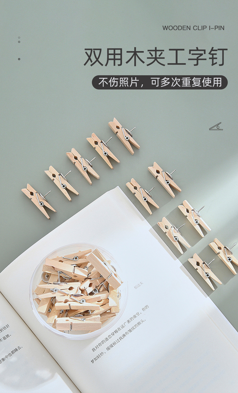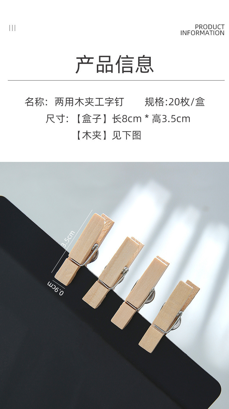 木质夹子两用图钉装饰挂钩带钉夹软木板学生固定照片墙留言毛毡板