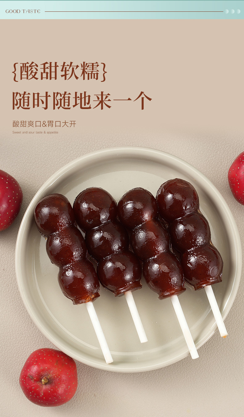 食欲をそそる保存果物、個包装の山査子糖漬け、おやつ、子供用棒付きキャンディ、乾燥山査子