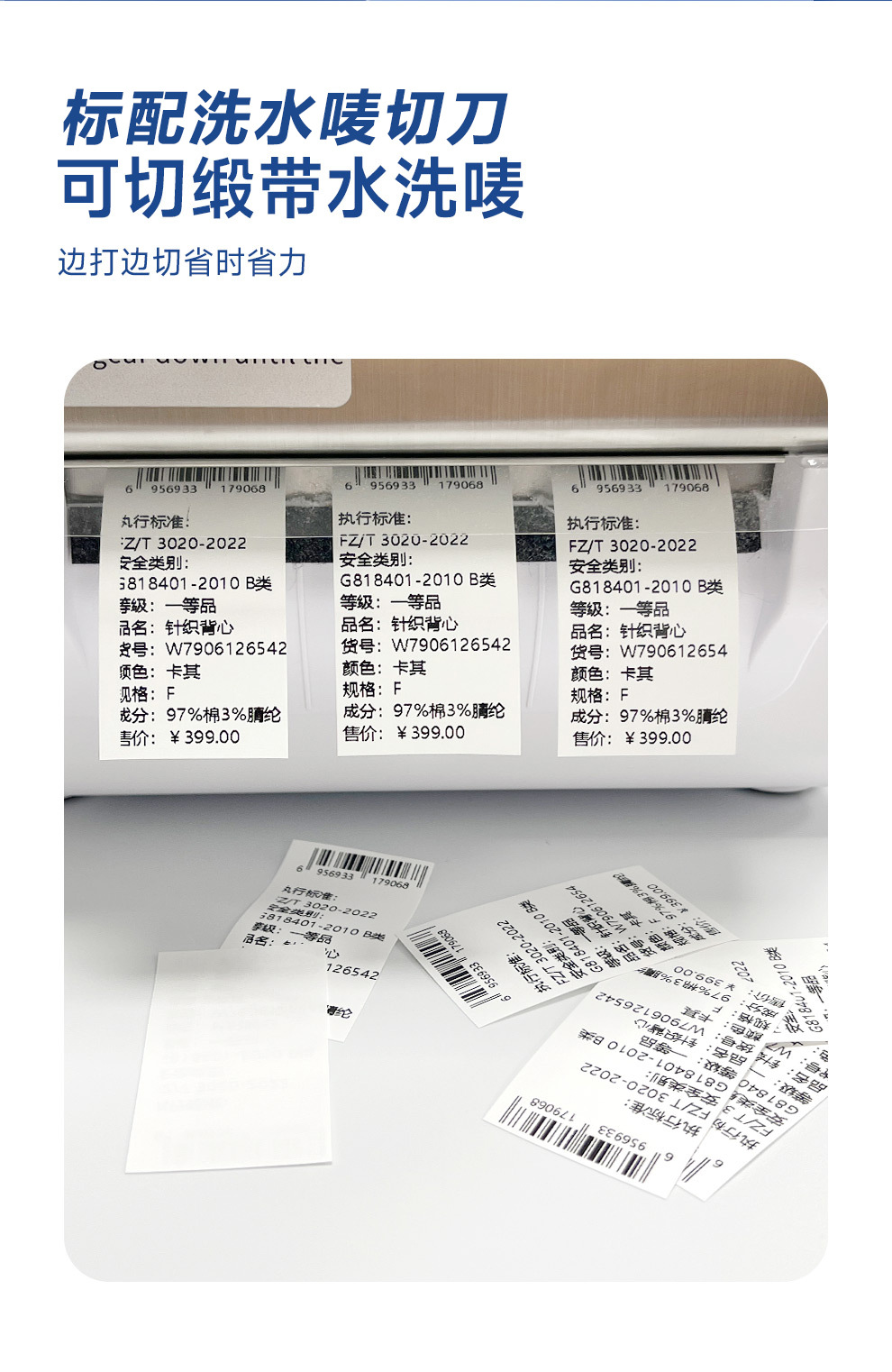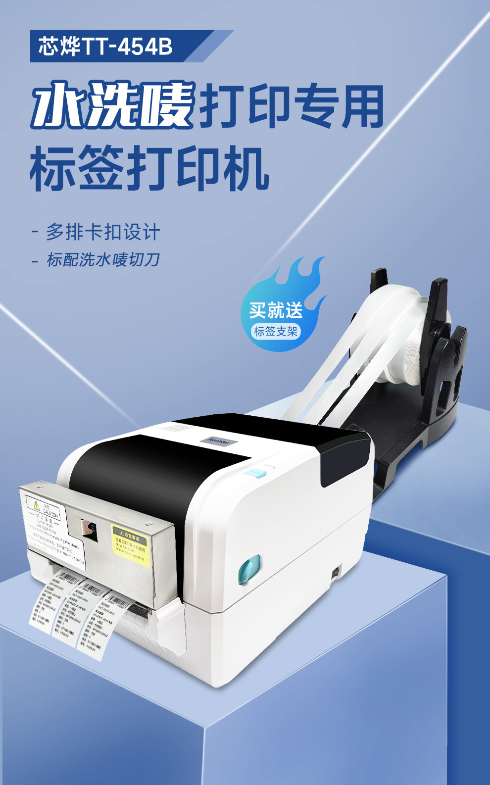 Xinye T454E 洗濯ラベルプリンターは、3 列の衣類洗濯ラベルを自動的にカットします。