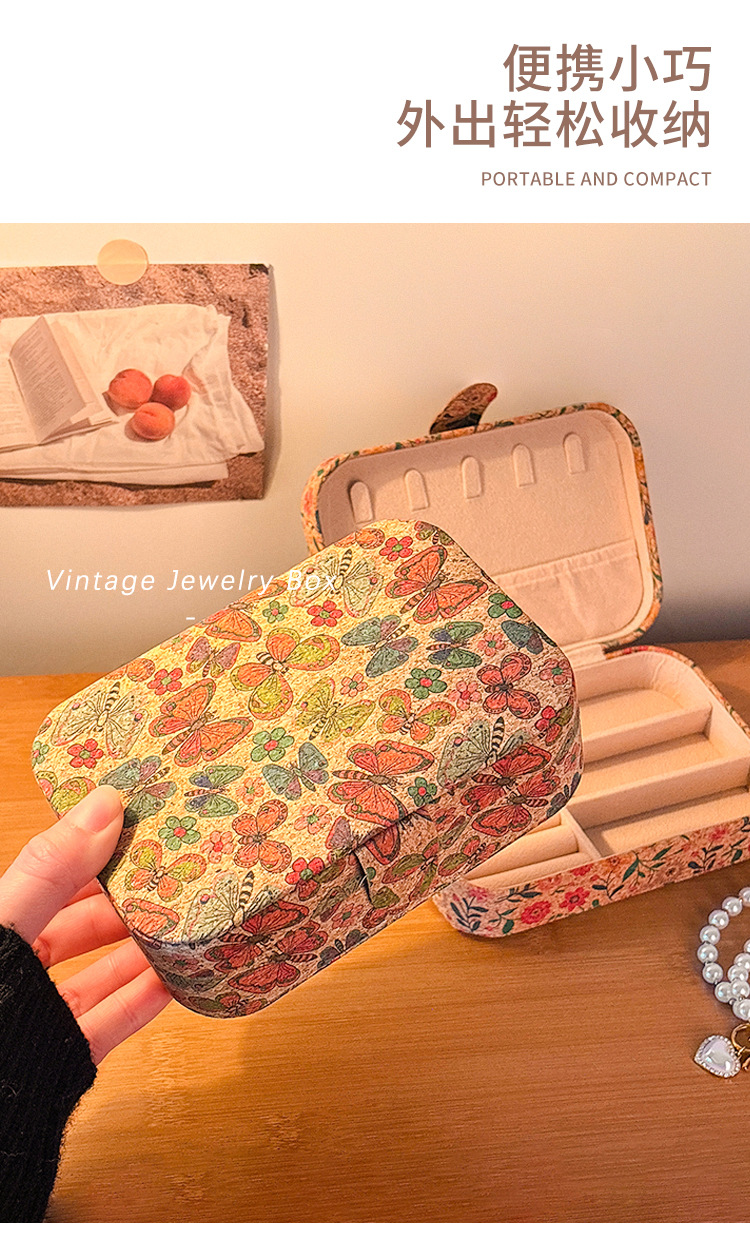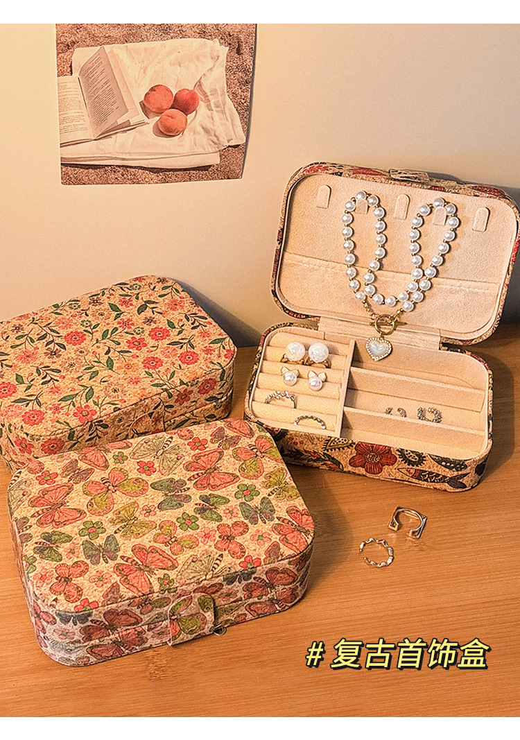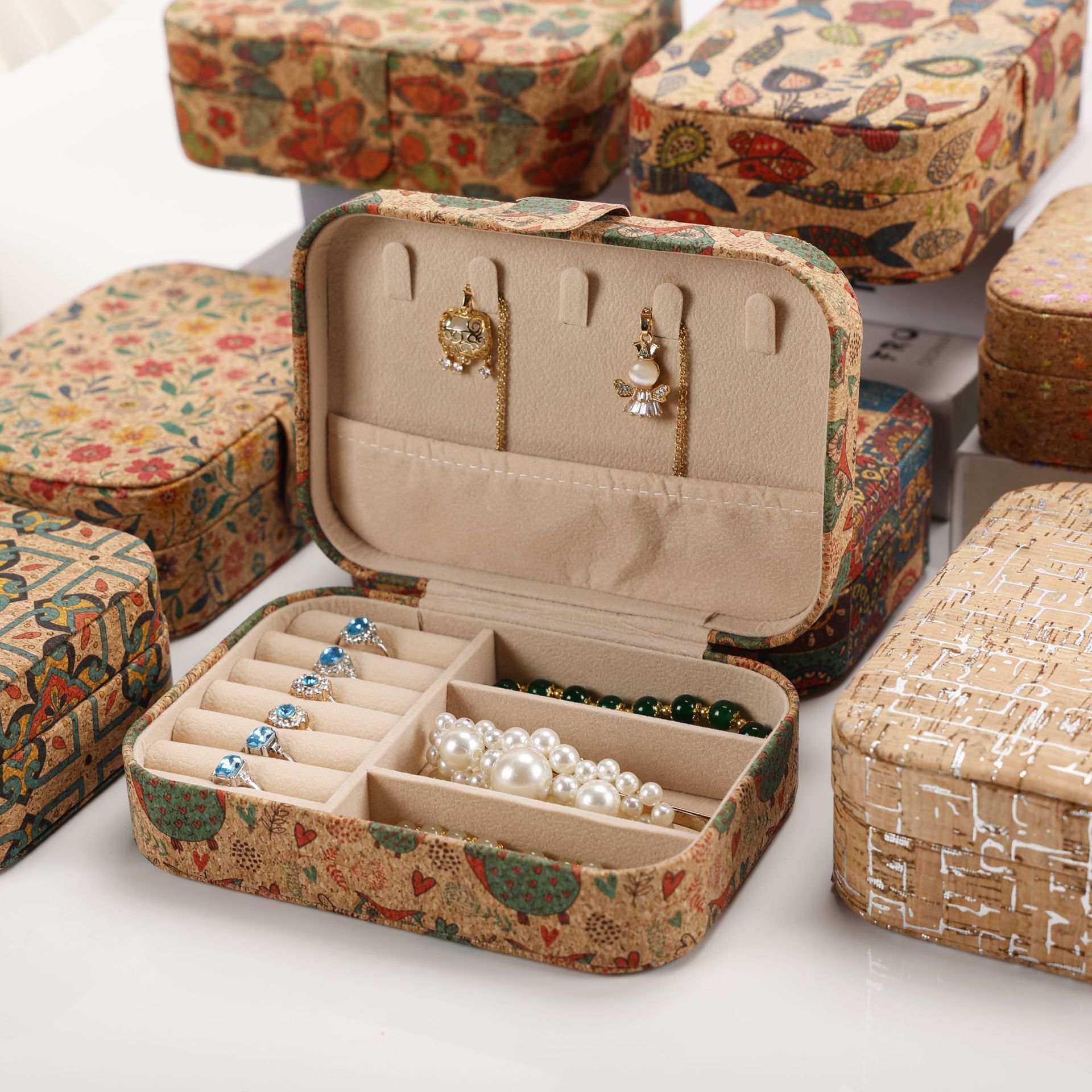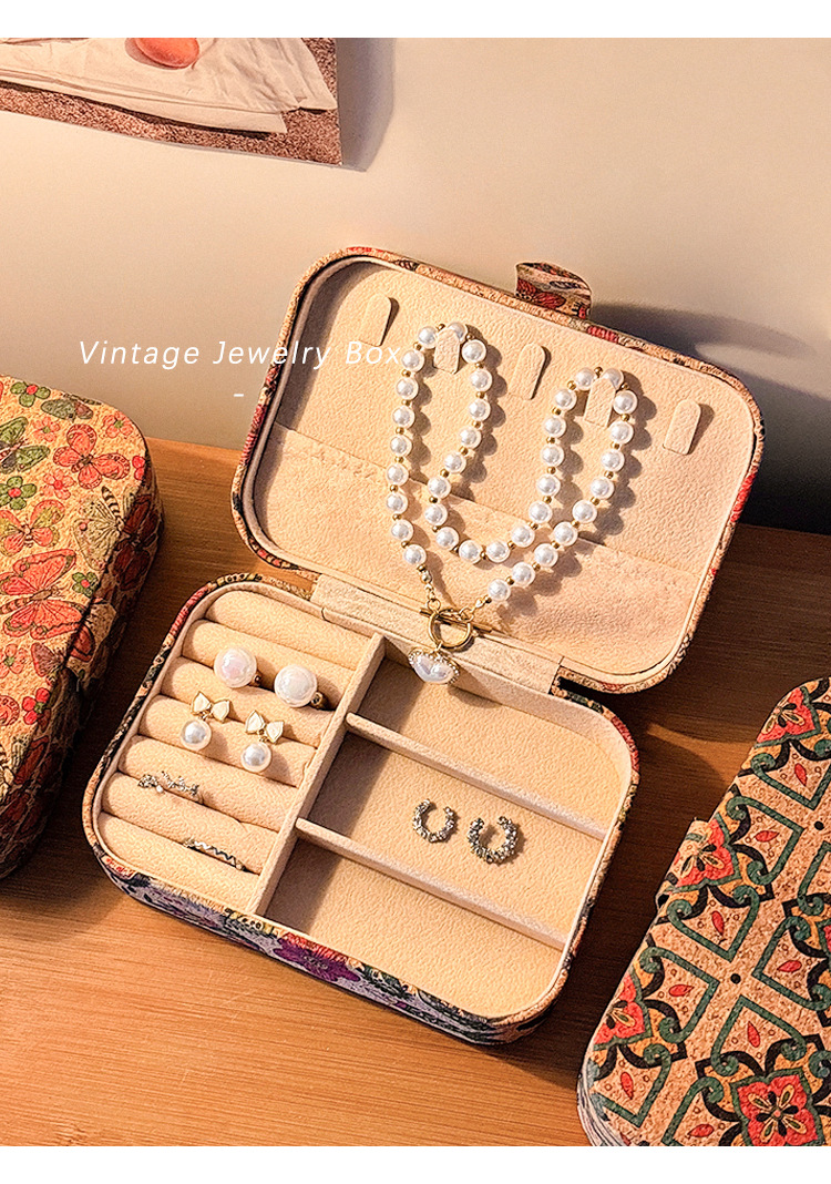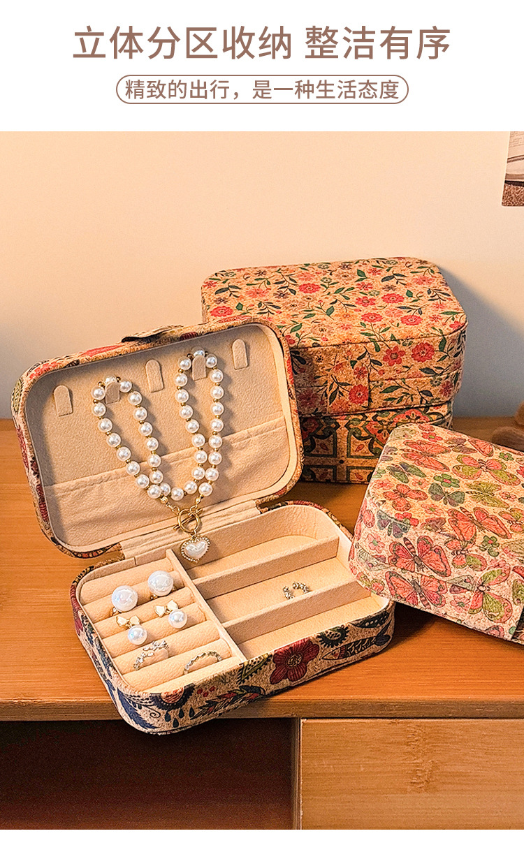 复古软木印花首饰收纳盒耳环戒指项链饰品整理便携旅行首饰盒