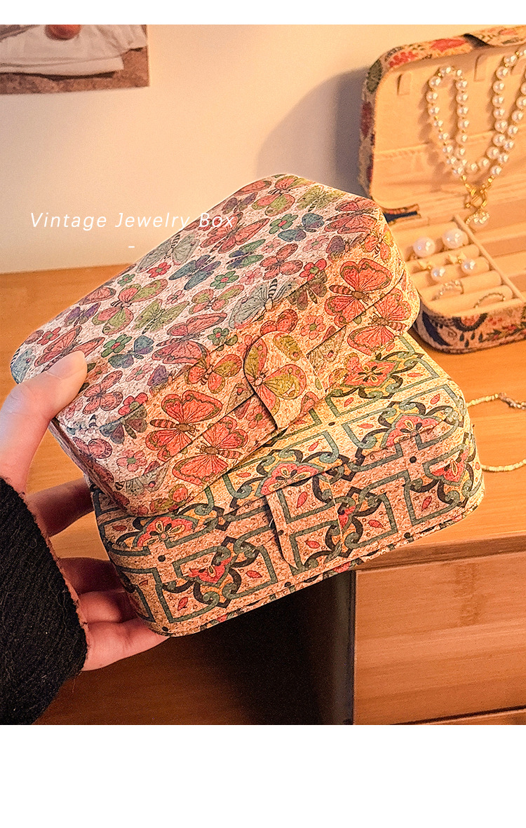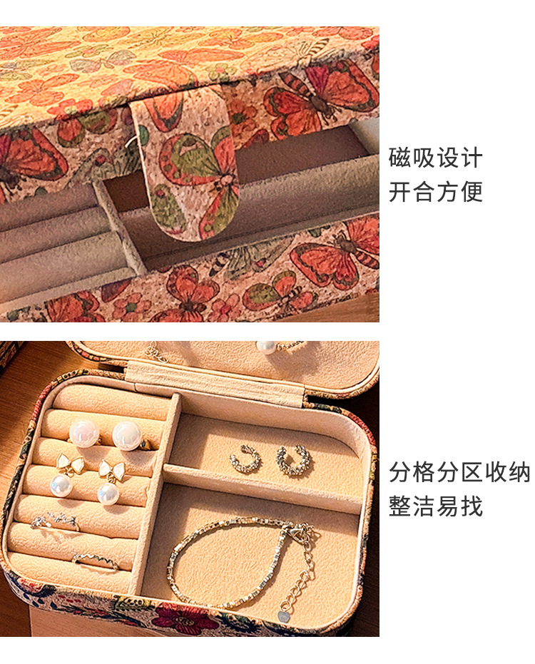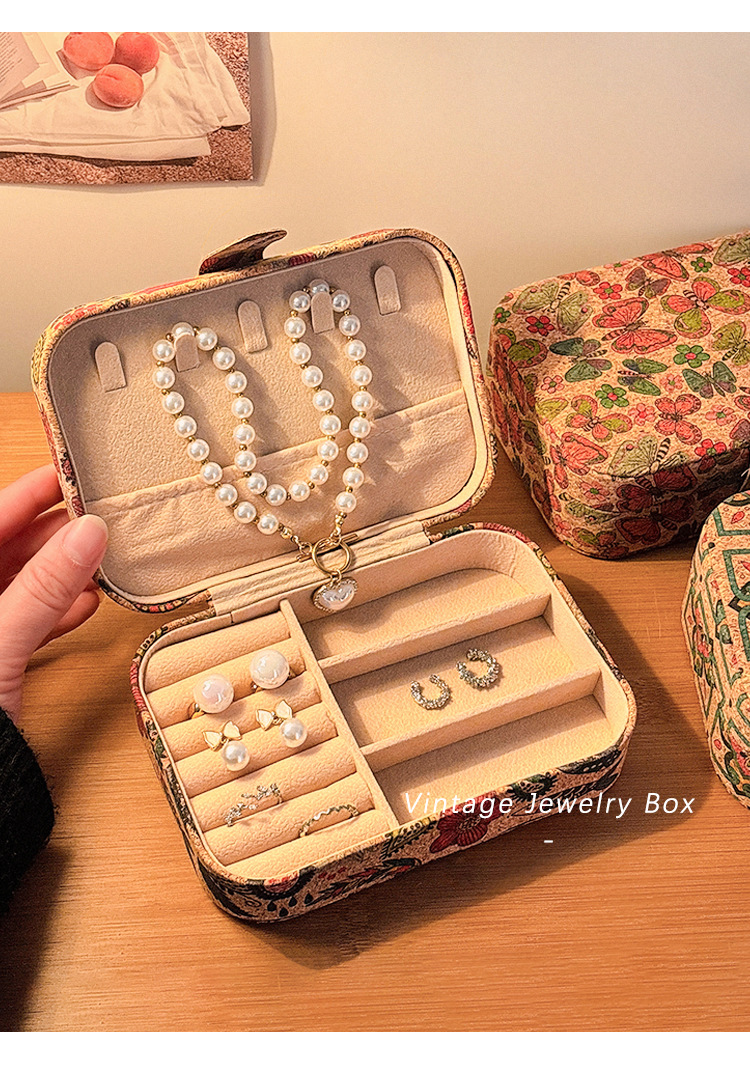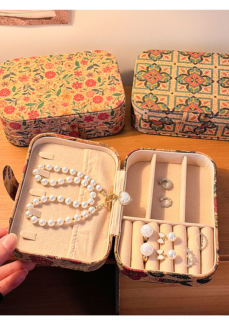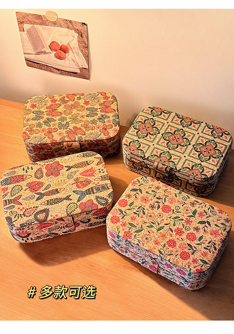 复古软木印花首饰收纳盒耳环戒指项链饰品整理便携旅行首饰盒