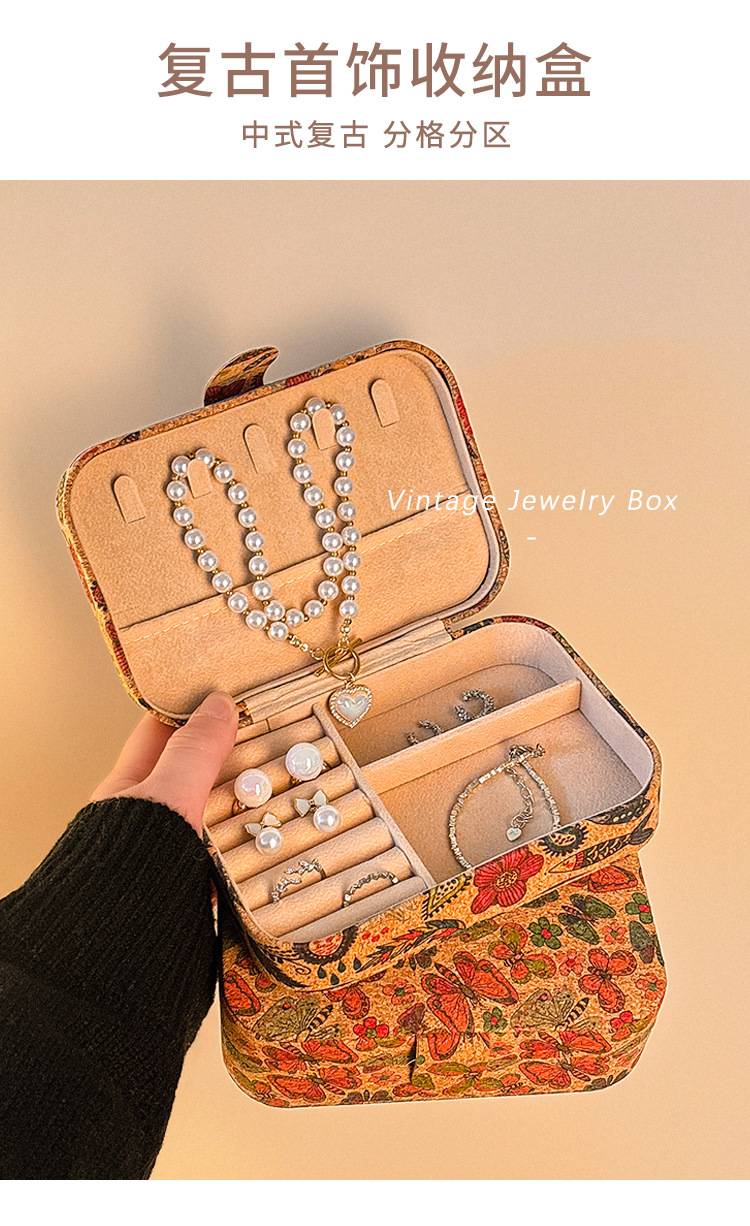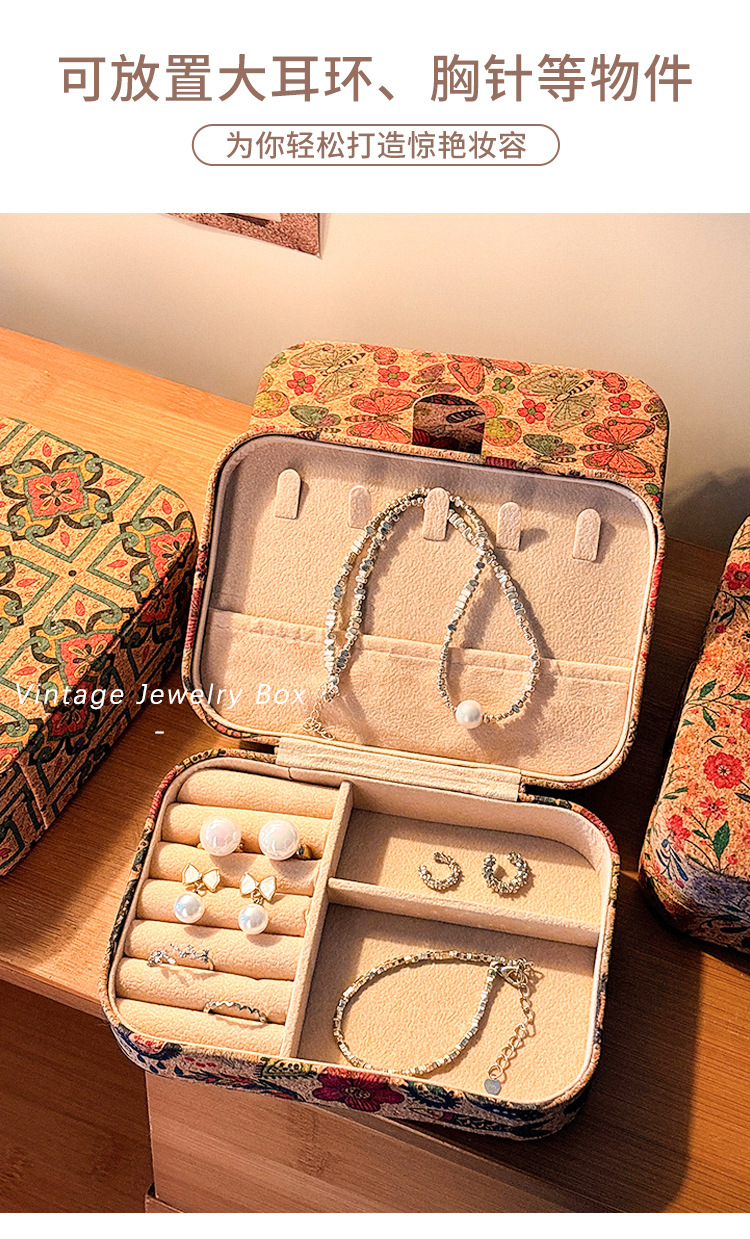 2025 新レトロライト高級ポータブルジュエリー収納ボックスリングネックレスジュエリー収納クロスボーダースポット卸売