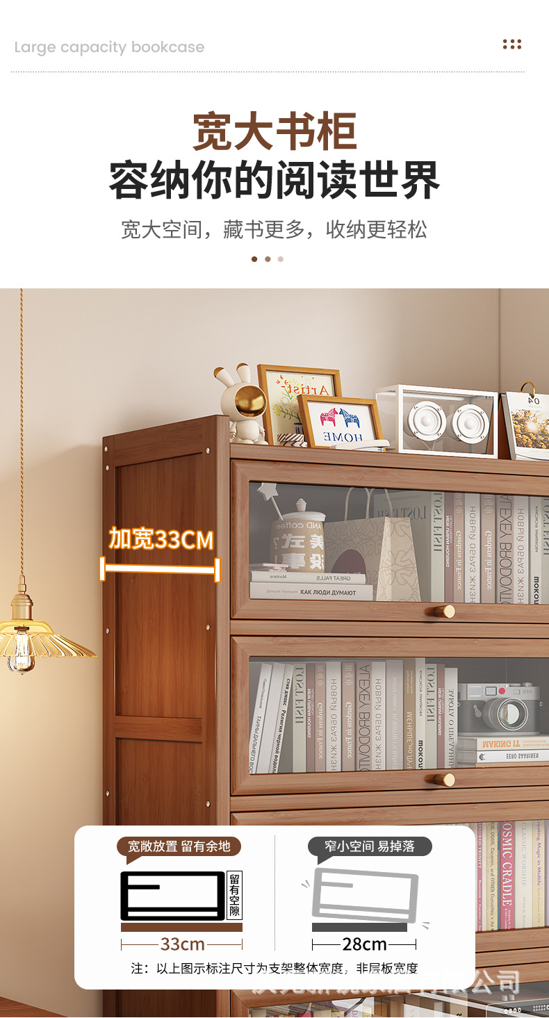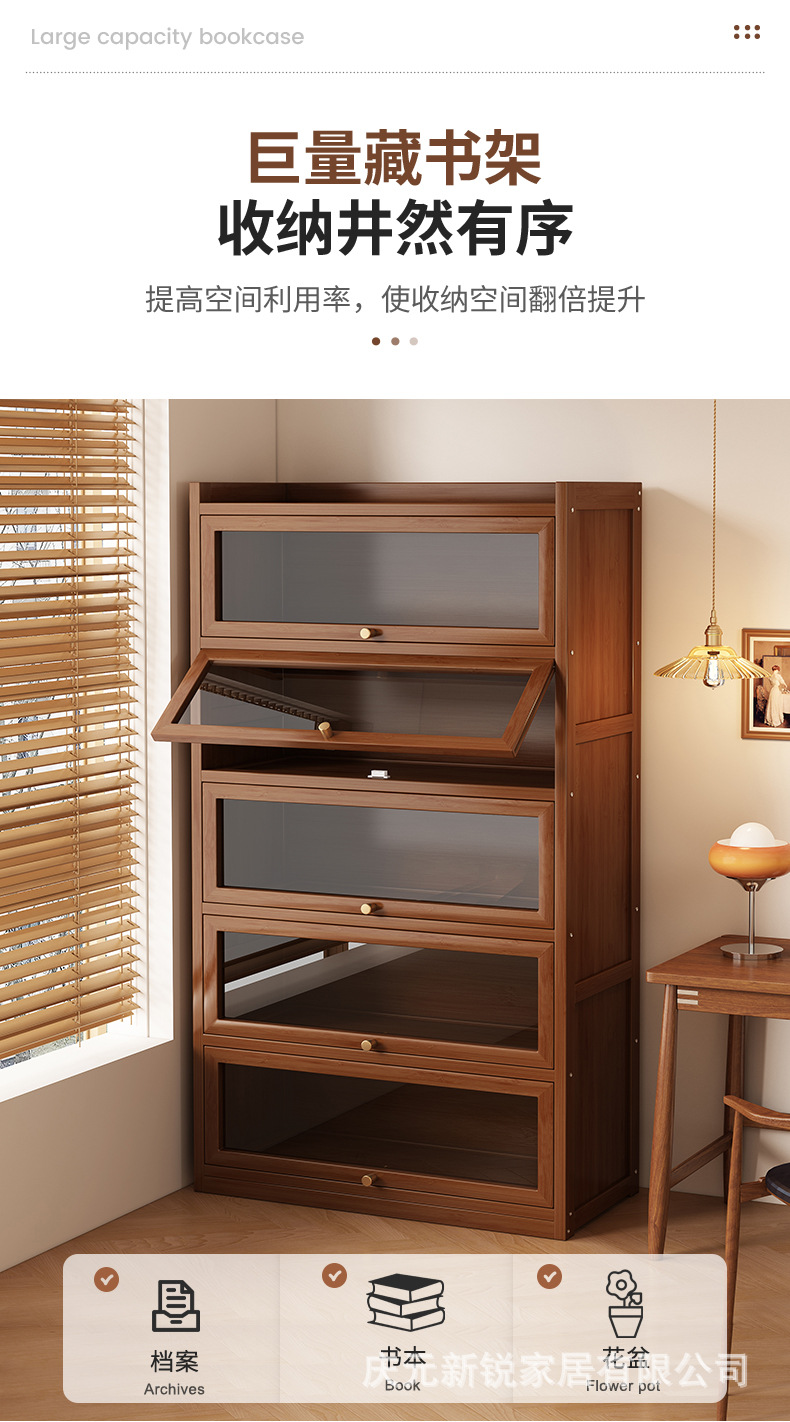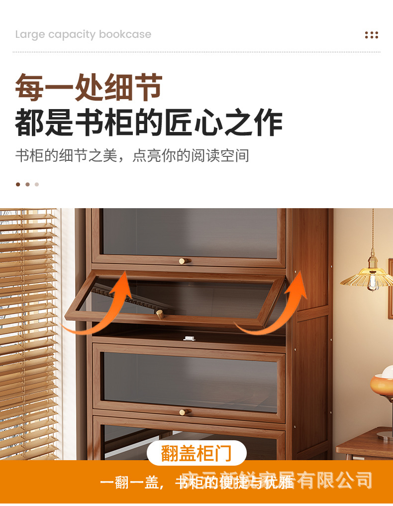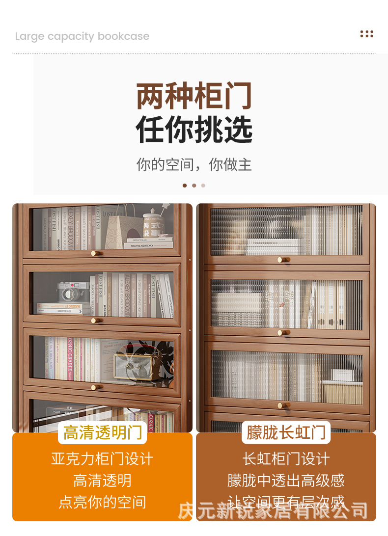 书架落地置物架家用实木书柜带门防尘透明玻璃门一体靠墙储物柜子
