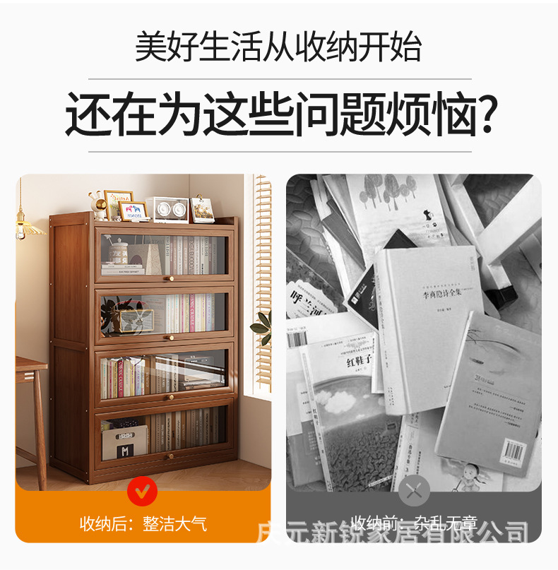 书架置物架落地简易家用书柜带门防尘储物柜客厅置物架子一体靠墙