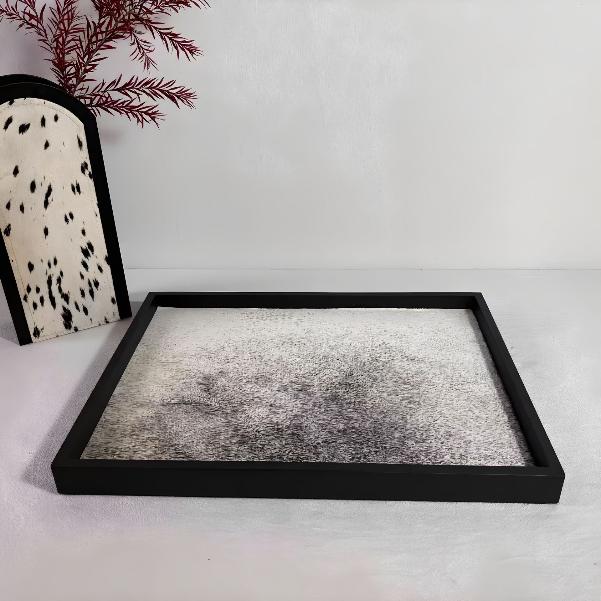 斑点馬の毛皮製トレイ収納飾り置物デスクトップリビングルームモデルルーム工芸品鉄工品