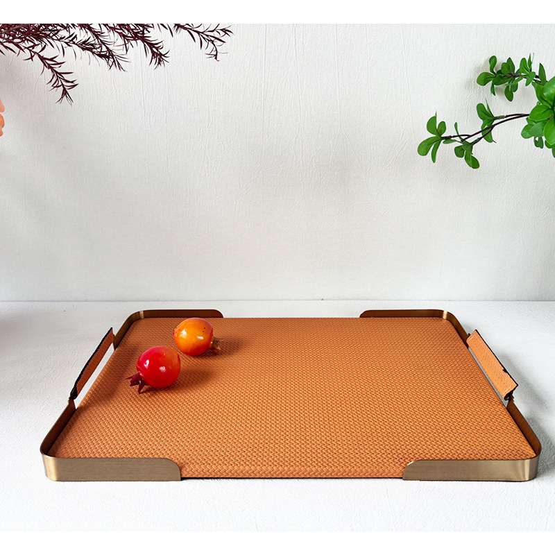 金属编织皮革托盘现代简约收纳样板间酒店客厅家居摆件几何艺术