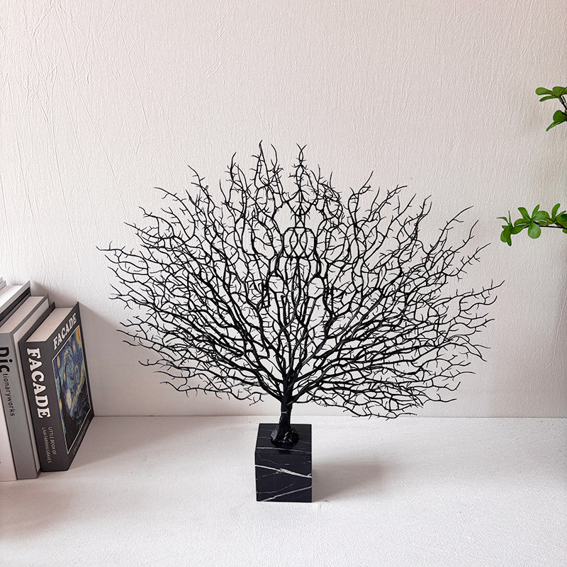 海树枝扇形大理石摆件仿真珊瑚创意装饰品样板间酒店玄关家居摆件