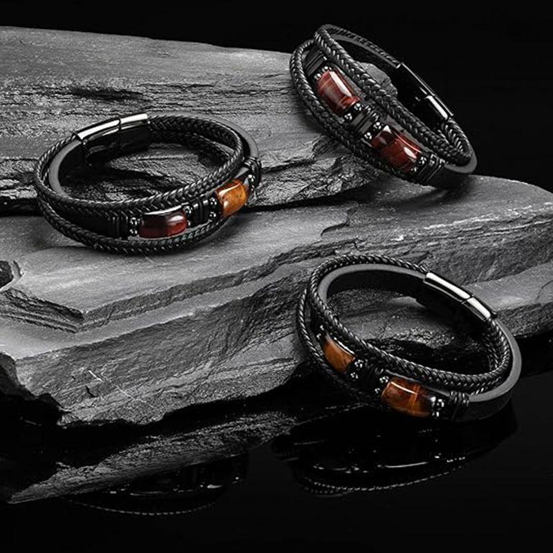 Amazonの人気のメンズレトロスタイルレザーブレスレットヨーロッパとアメリカの人気のタイガーアイストーンブレスレットクロスボーダーステンレススチールブレスレット