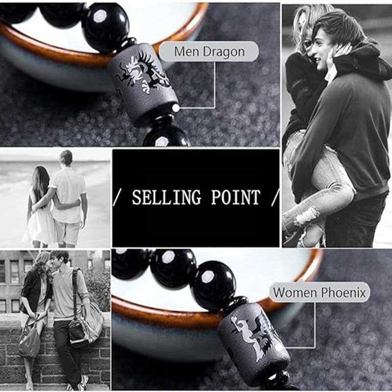 黒曜石の砂の竜鳳は仏珠のブレスレットの男性の女性のカップルの手の串の露店の商品の供給源を飾ります。