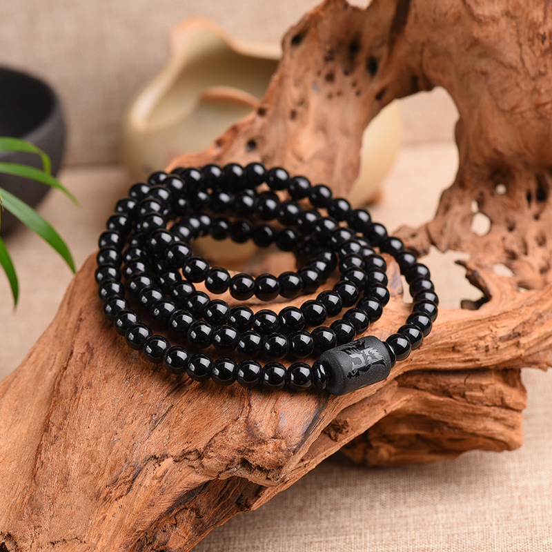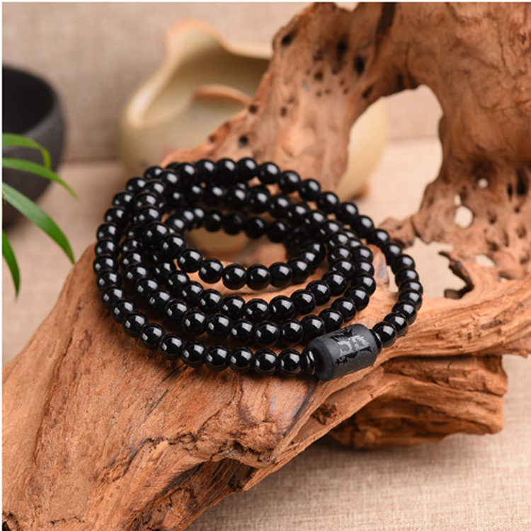 黒曜石フロスト龍鳳単輪ブレスレット男性女性カップルの多輪108個の仏珠手串の露店ソース
