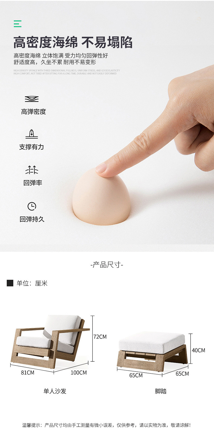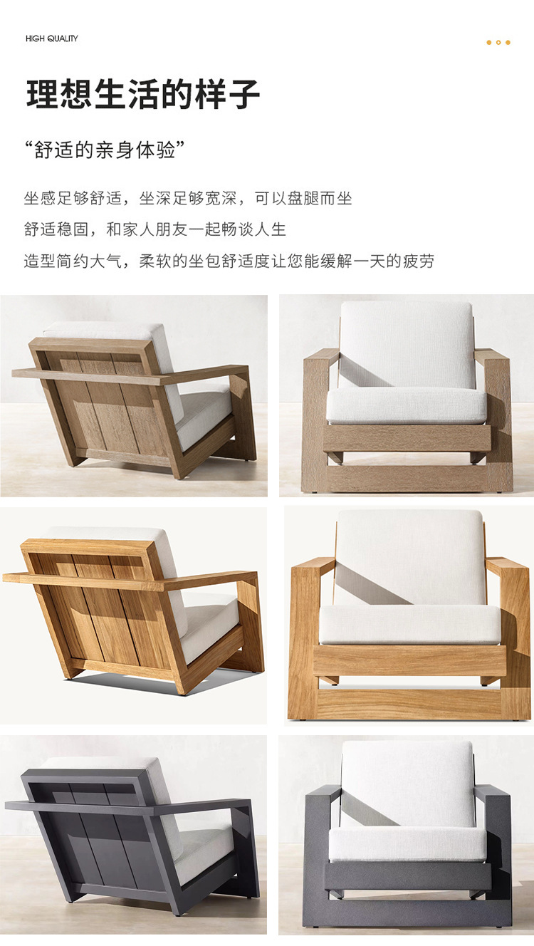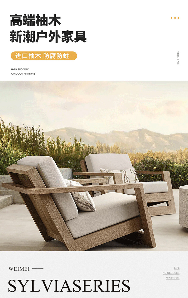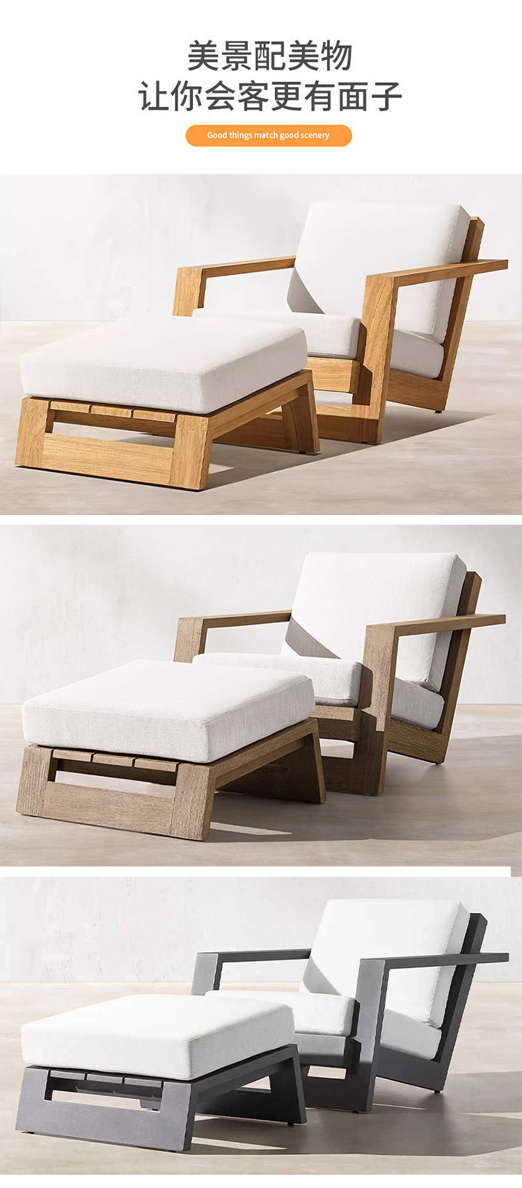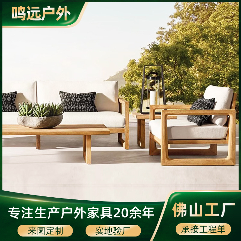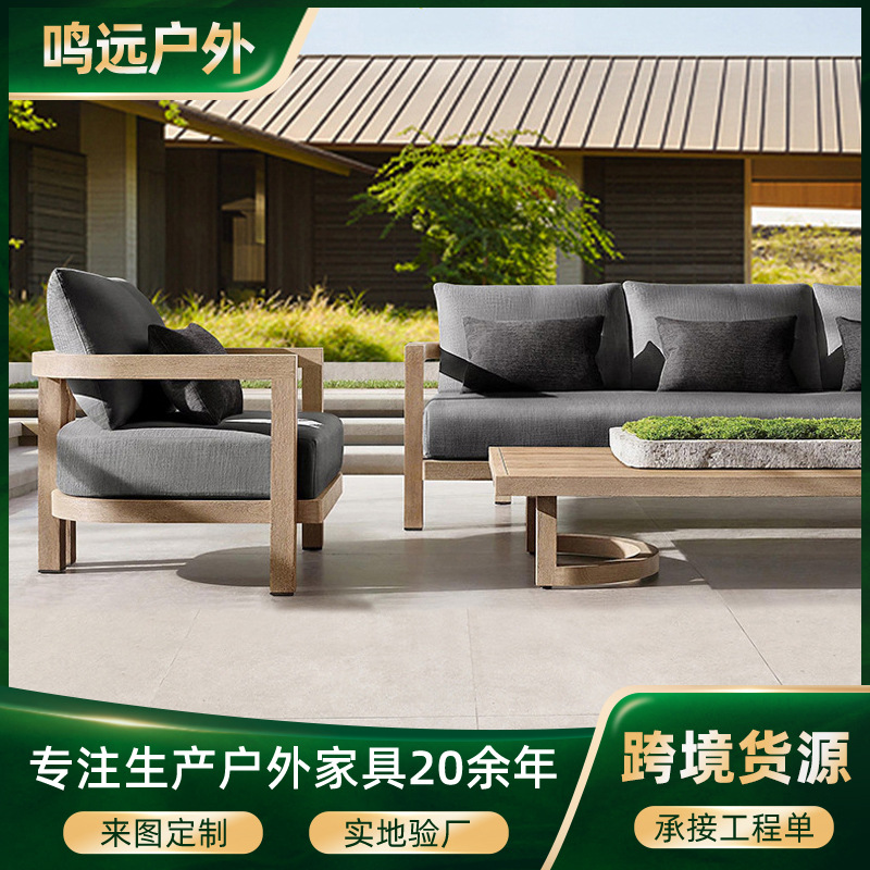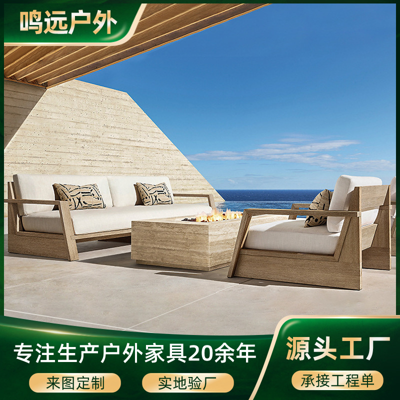 寂風オーダーメード屋外ソファ庭屋外チーク材バルコニーソファ防水日焼け止めガーデン屋外家具