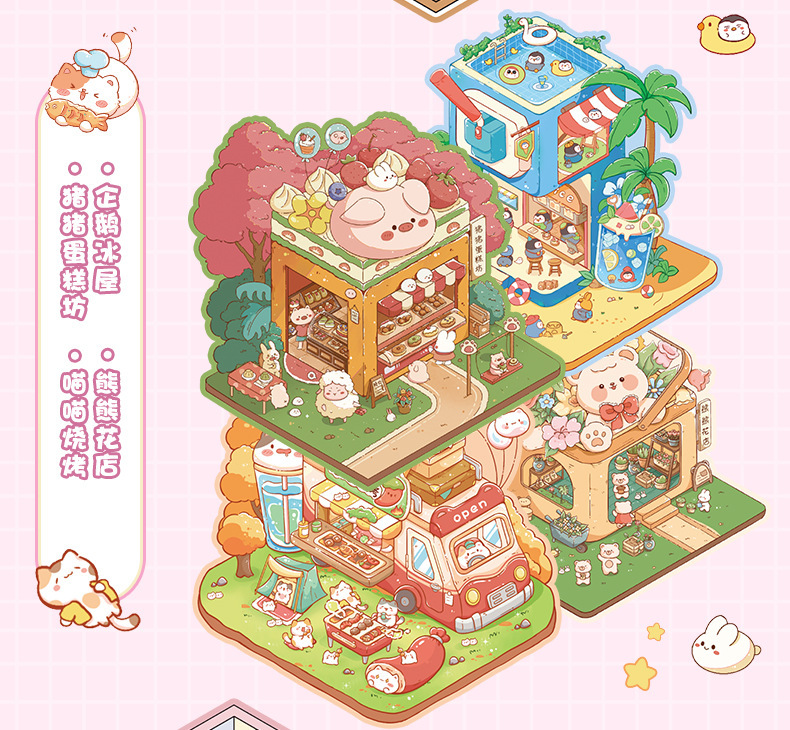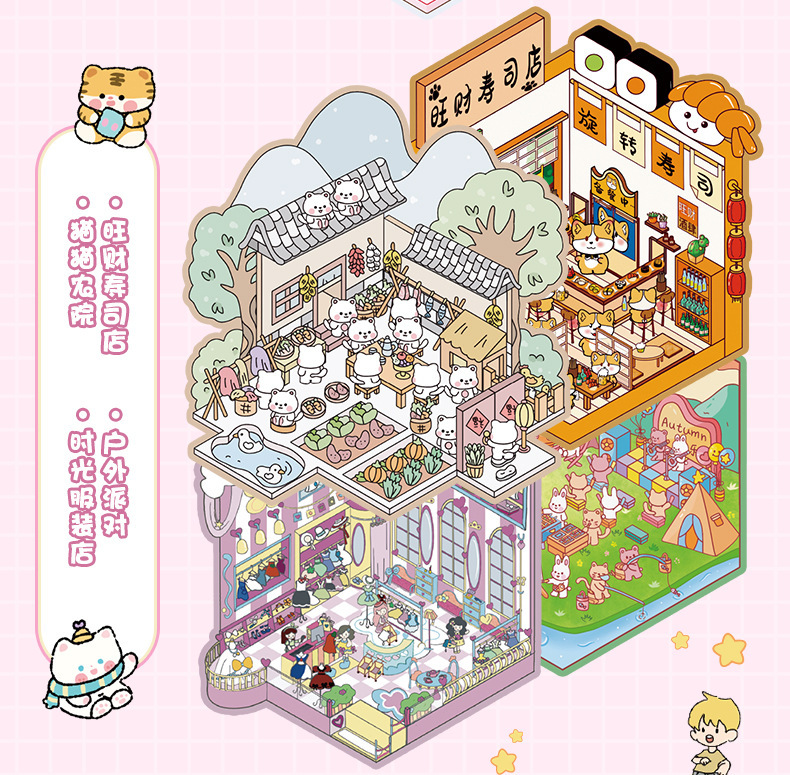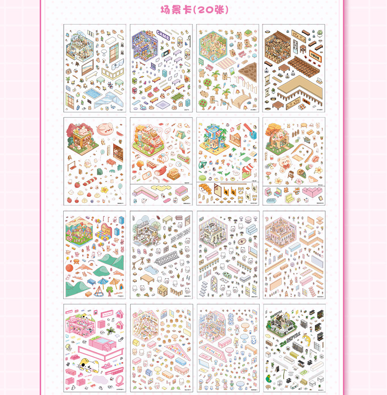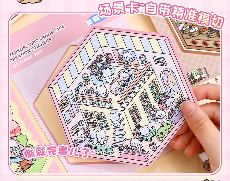 かわいい造園ステッカーブック 3D 立体シーン装飾コラージュ子供の漫画素材手作り小さなギフト賞品