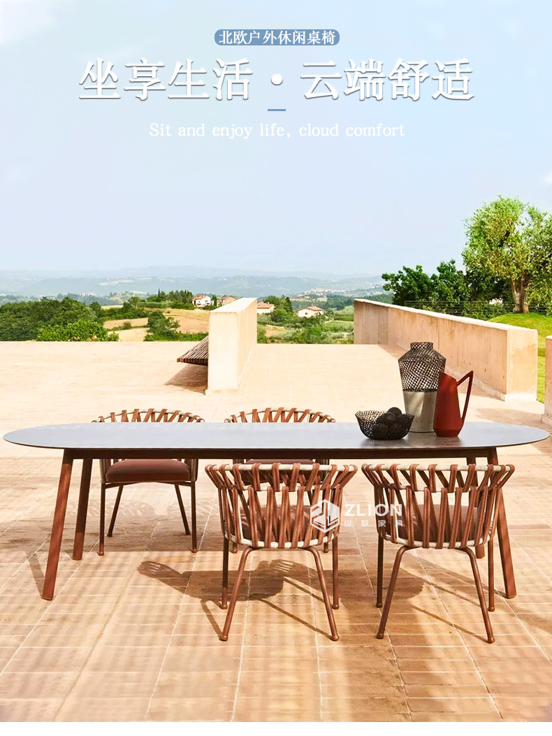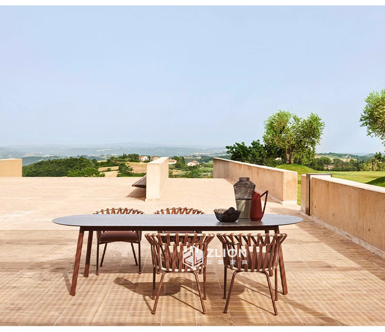 屋外ヴィラテラステーブルと椅子の組み合わせレジャーホテル中庭ガーデン家具バルコニーダイニングテーブル籐椅子セット組み合わせ