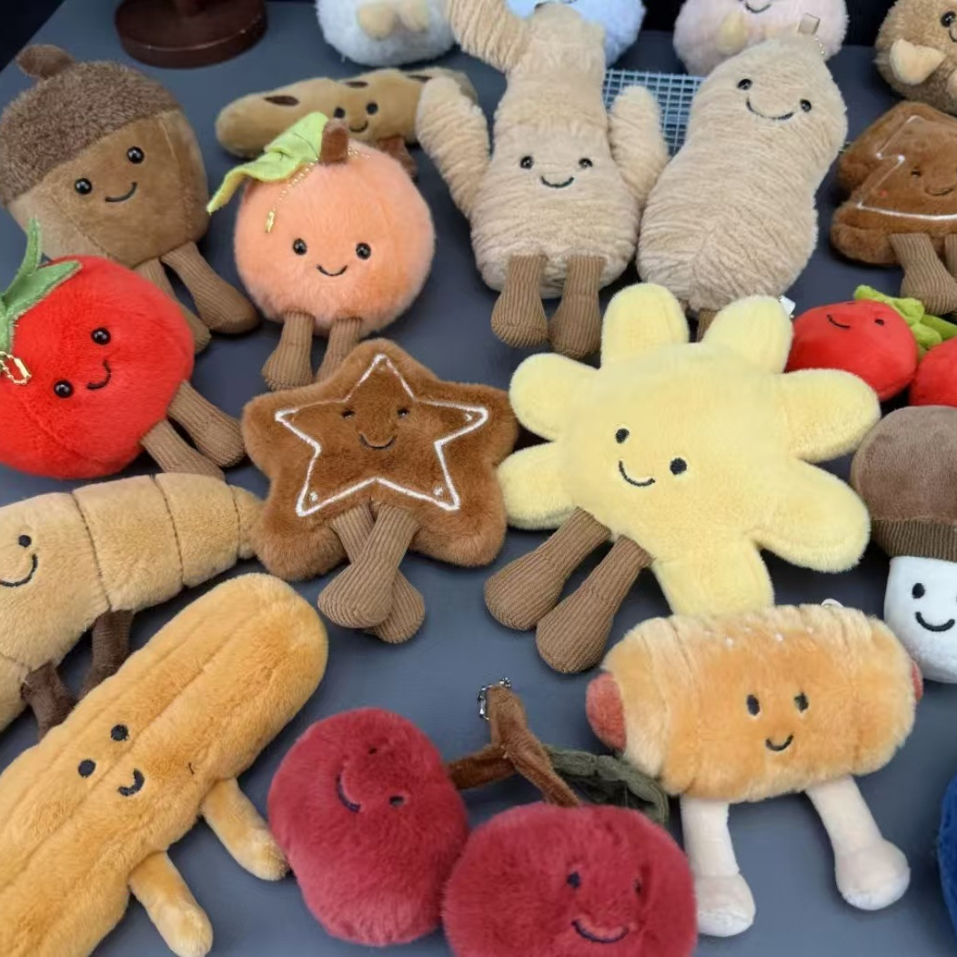 英国ジェリーキャット風ぬいぐるみキーホルダー、パン物語バッグチャーム、野菜フードキーホルダー