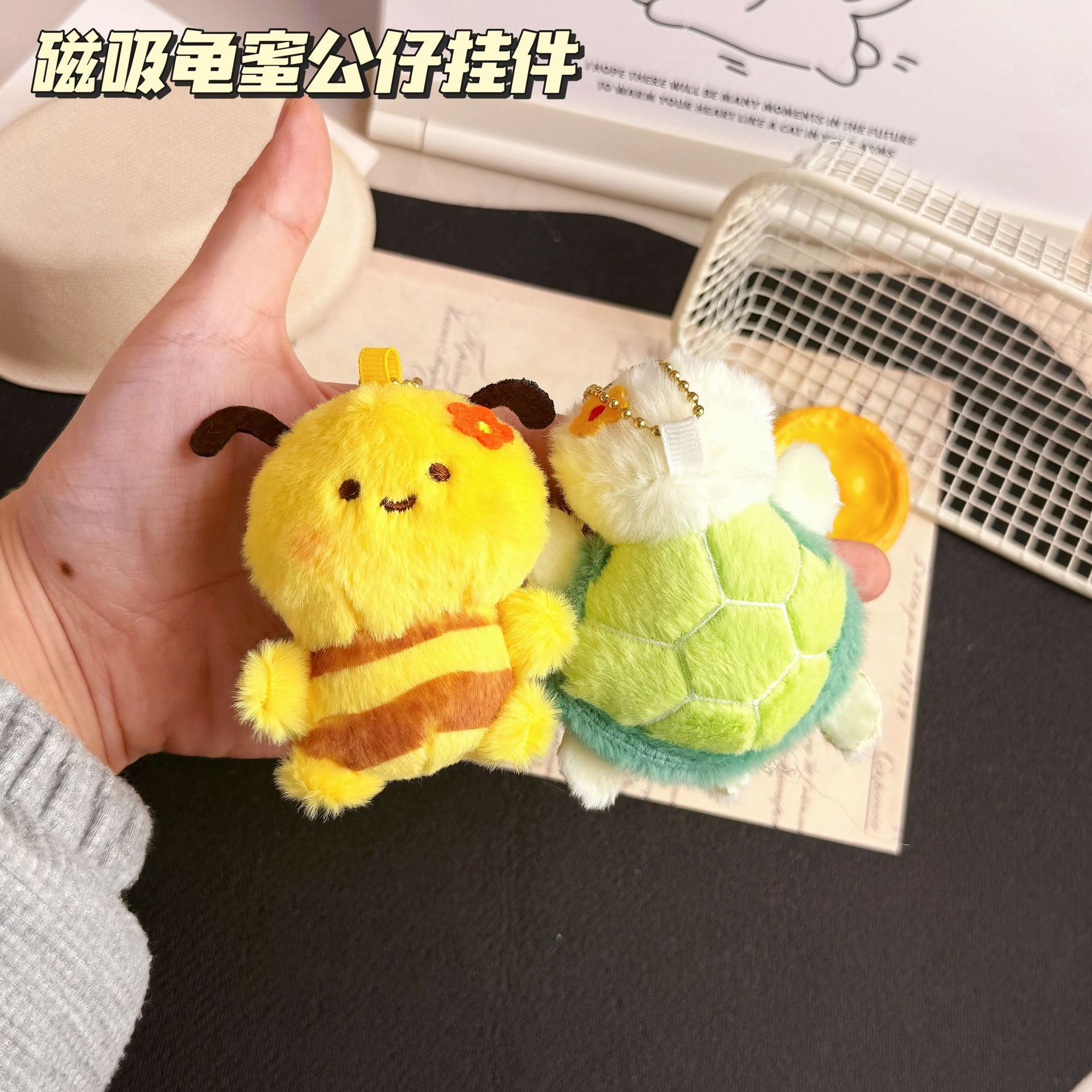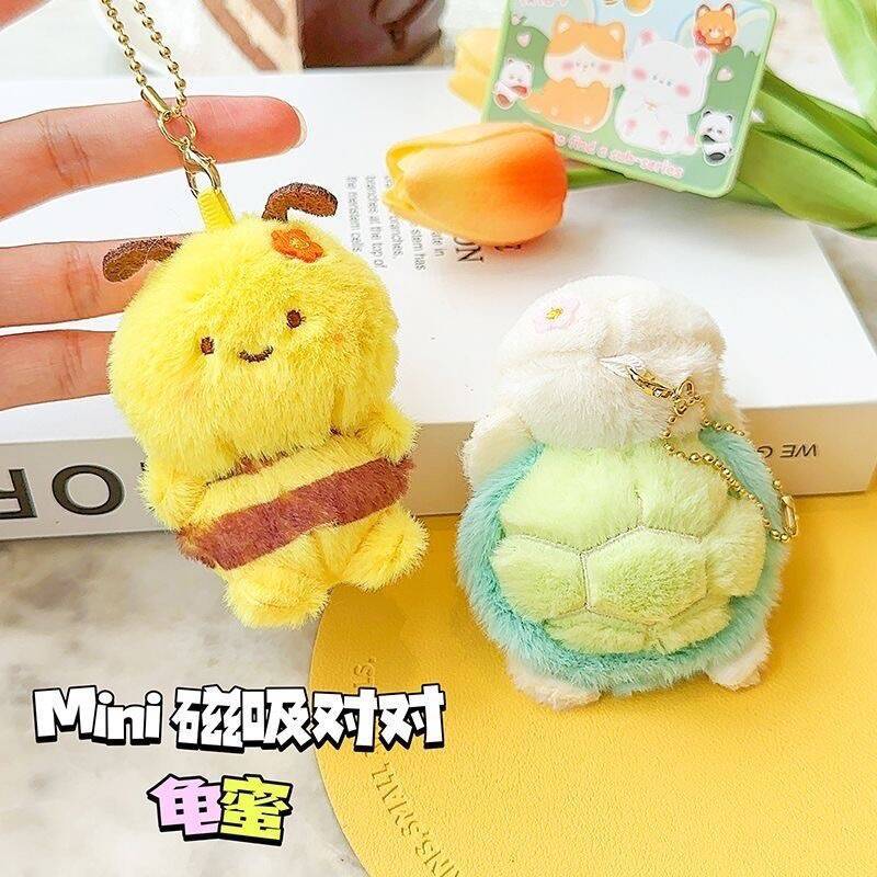 网红可爱磁吸小蜜蜂乌龟挂件毛绒玩具龟蜜公仔包包挂饰玩偶钥匙扣