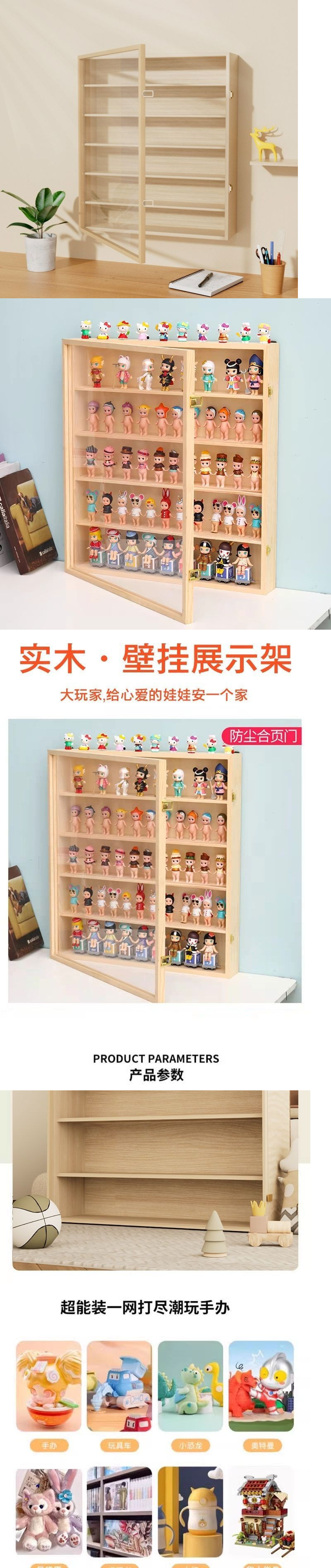無垢材ブラインドボックスディスプレイラック収納フィギュアディスプレイキャビネットバブルマート人形ディスプレイボックス壁掛け壁収納ラック