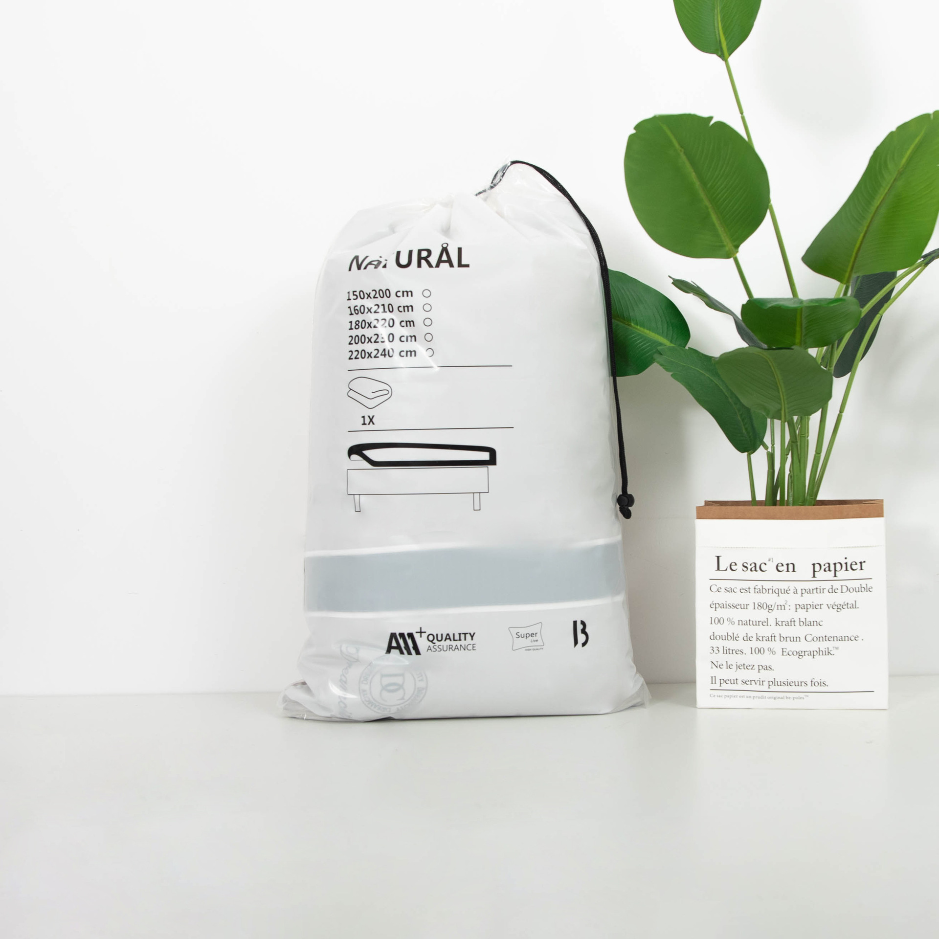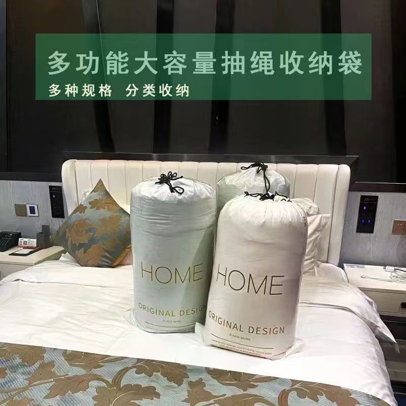 ロープを引いて特収納袋に入れてポケットを締めて梱包した防塵布団防湿ビニール袋綿袋透明サイズ
