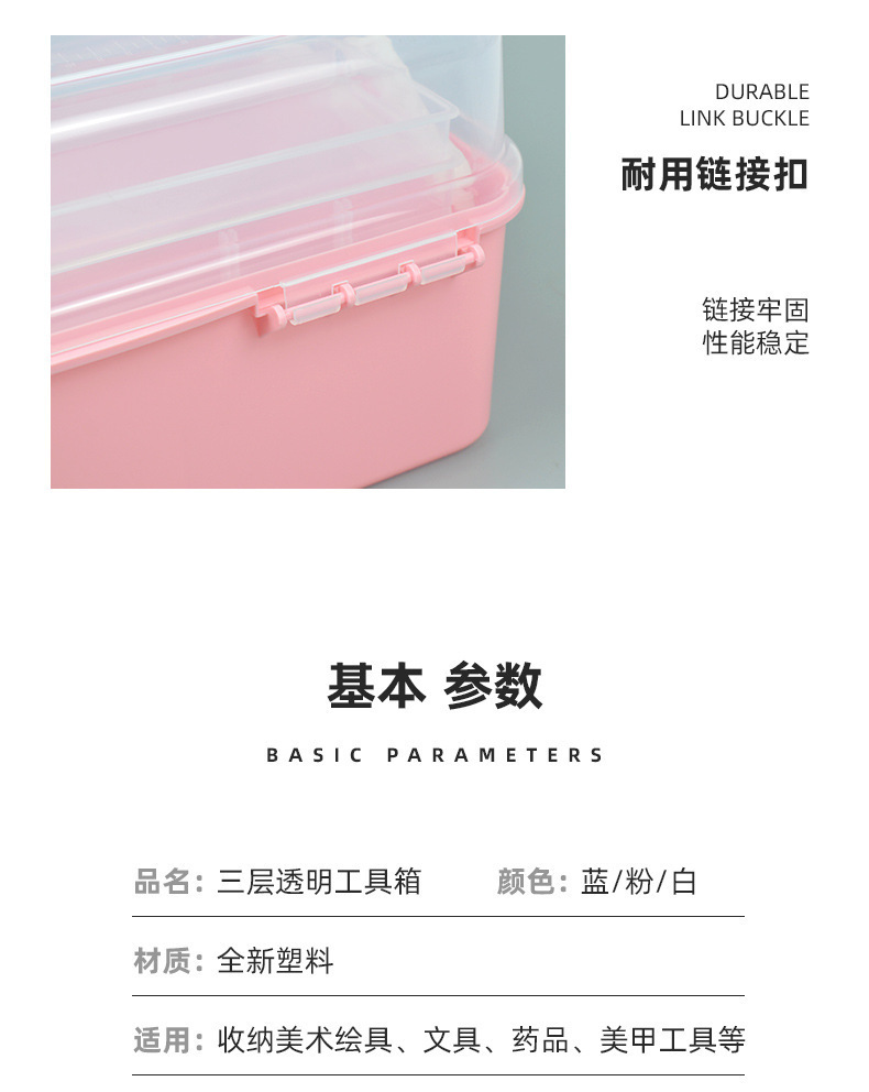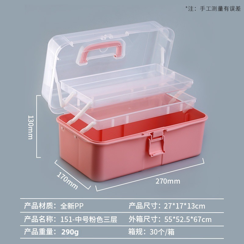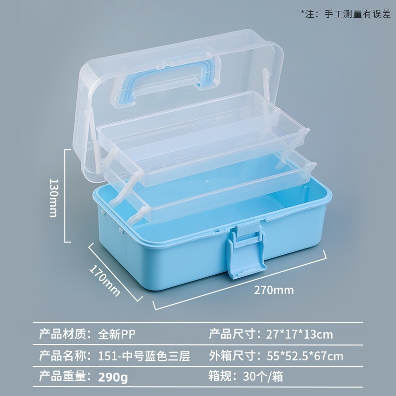 卸売三層式携帯収納ボックス 大型 金物工具 美術画筆 雑貨 化粧品収納ボックス 290g