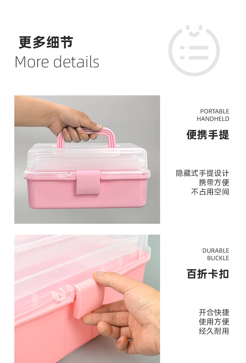 三层化妆品工具收纳盒医药箱收纳盒折叠工具箱美术家用收纳箱