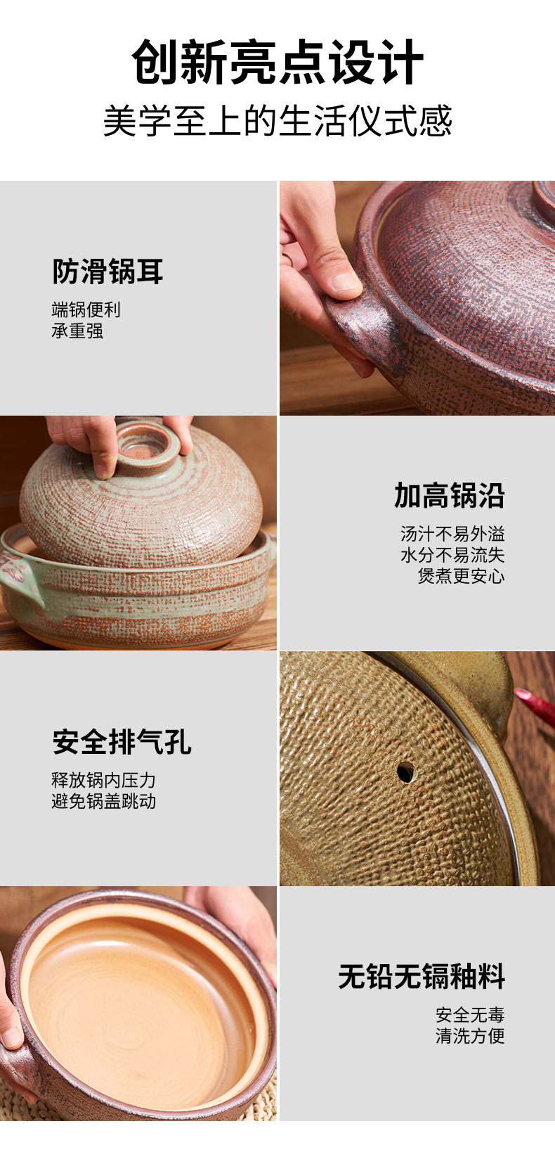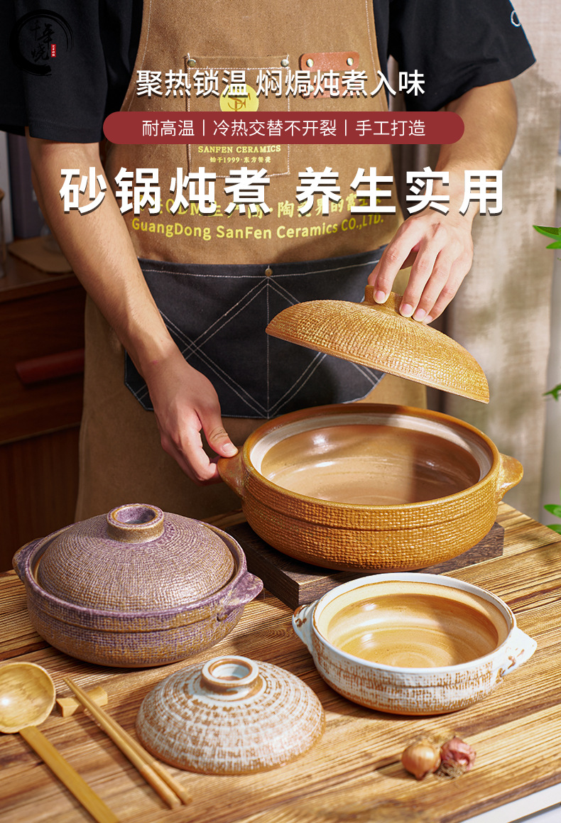 ミレニアム耐熱高温乾燥耐性砂鍋、お粥、スープ、煮込み、直火砂鍋、家庭用ジジ鍋、深鍋、浅鍋