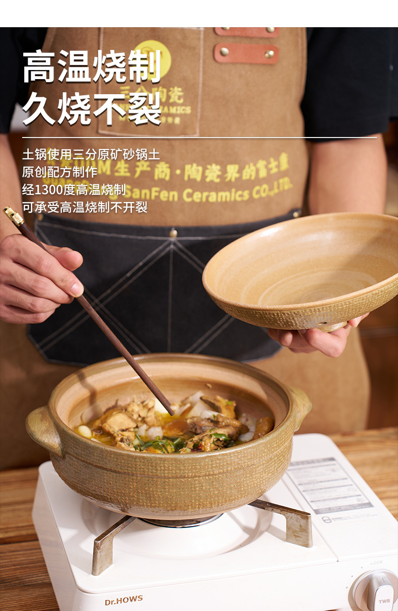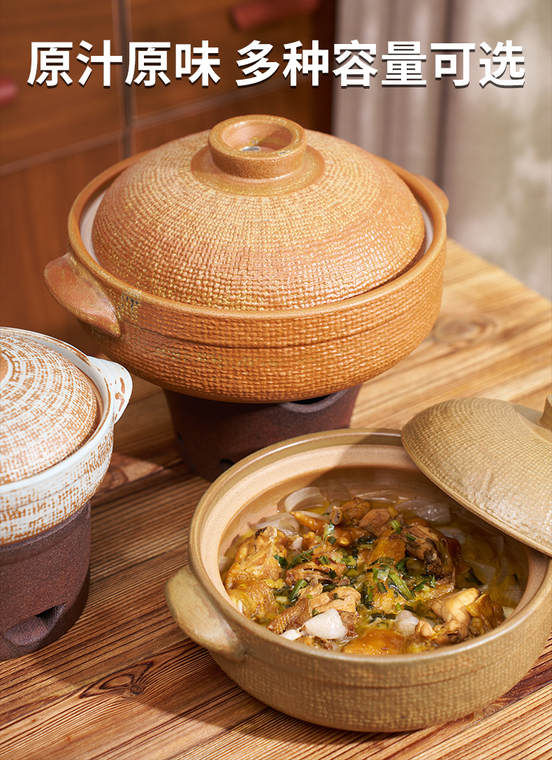三分焼日本式手描き土鍋家庭用シチュー鍋粥鶏スープ鍋ガスコンロ高温レストラン乾燥土鍋