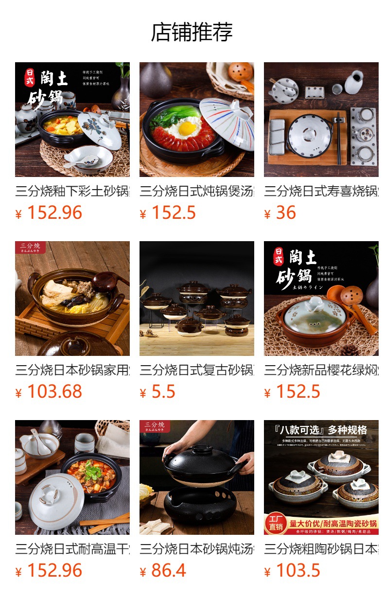 三分焼陶磁器土鍋鍋家庭用日本式高温シチュー鍋
