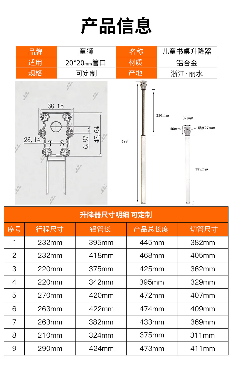 子供用学習机椅子、家庭用机脚金具、学習机昇降式脚、アルミ合金製テーブル脚