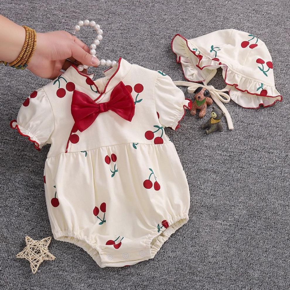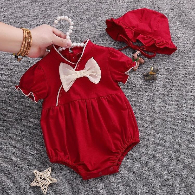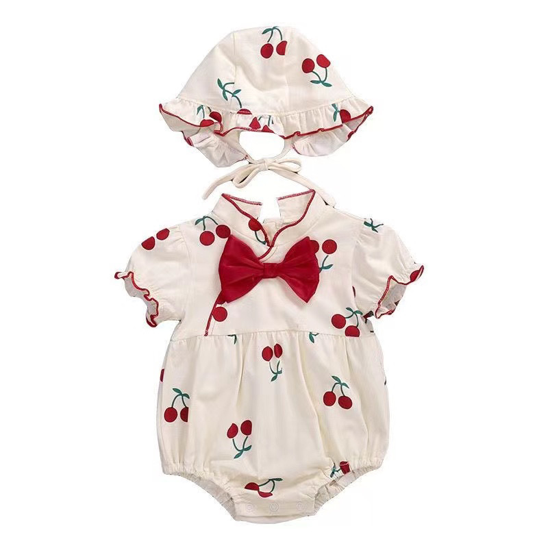 女の子ベビー夏服満月ジャンプスーツ百日三角ハーレム夏スーツ