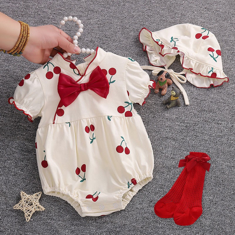 チェリー半袖カーキ+帽子,チェリー半袖カーキ+帽子+靴下,赤いカーキ+帽子,赤いカーキ+帽子+白い靴下