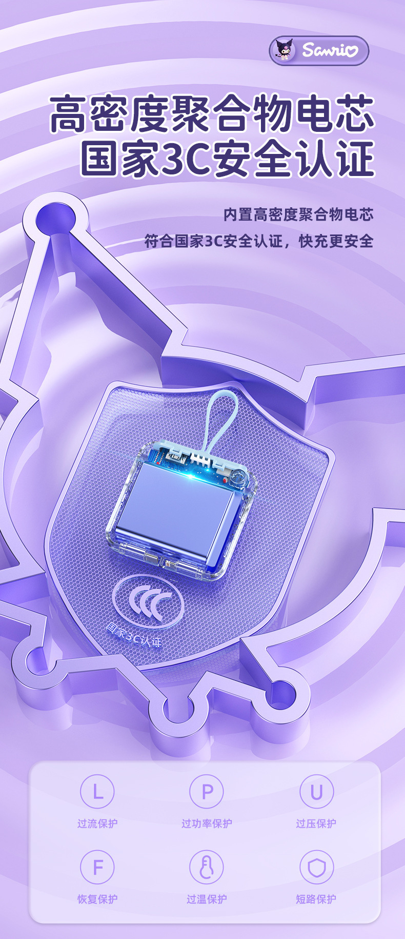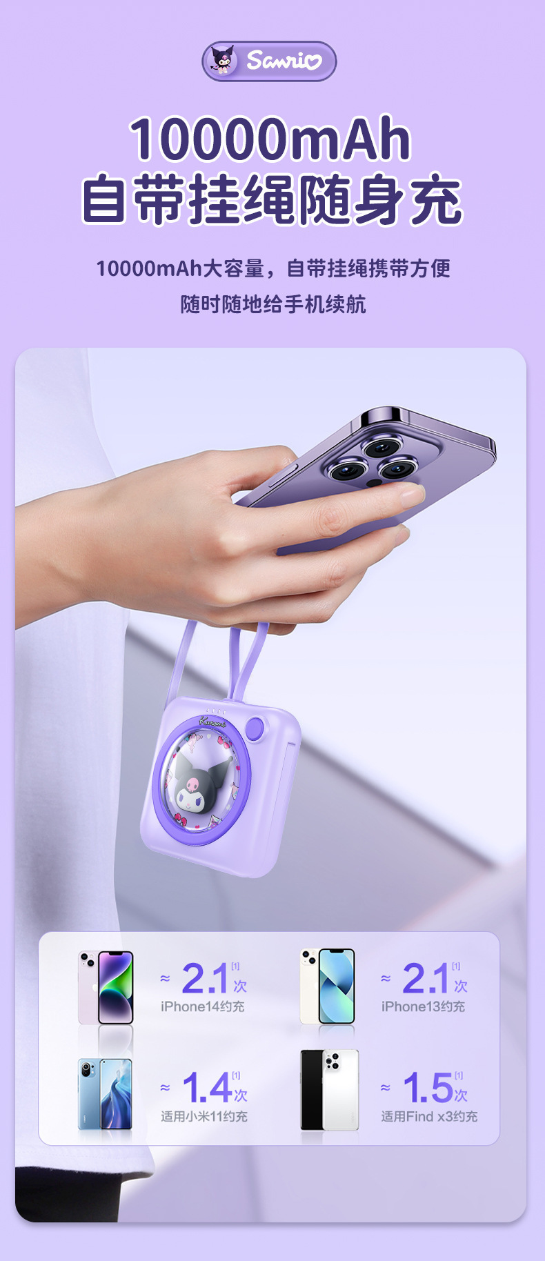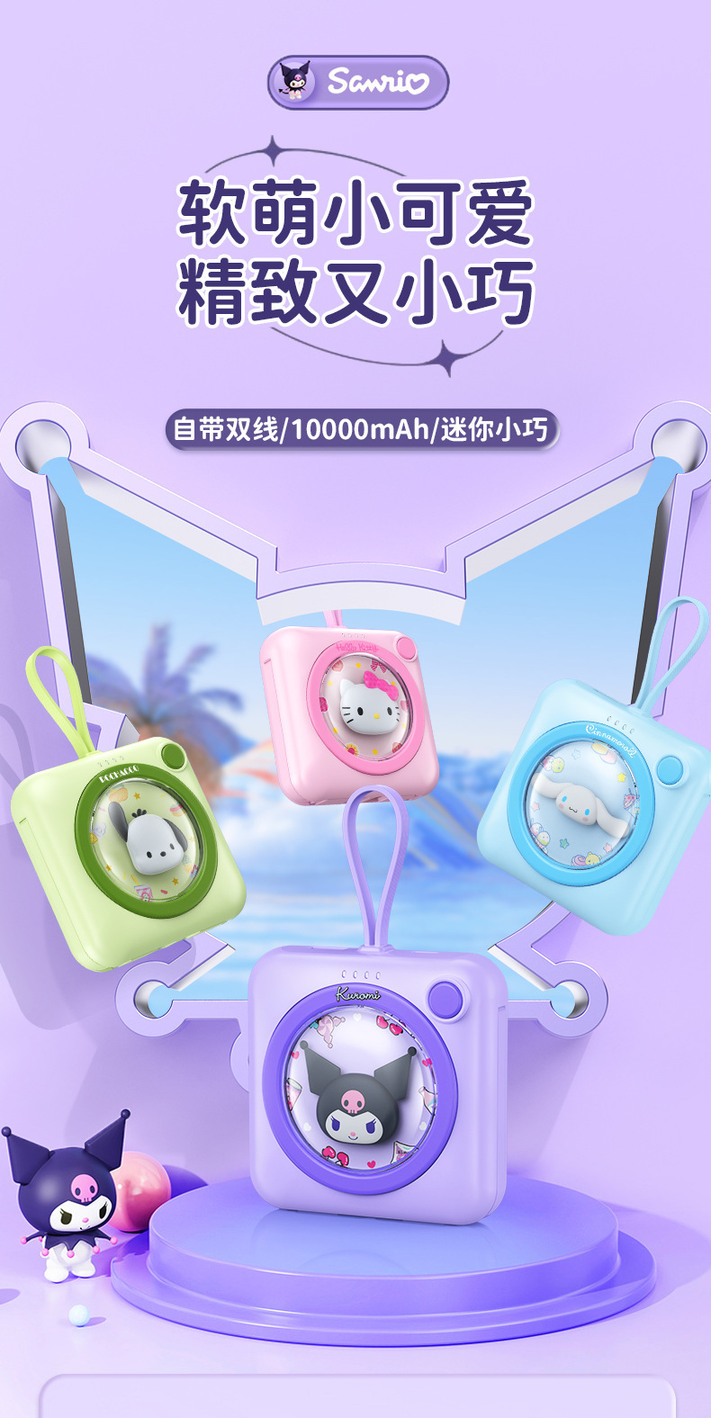 サンリオ・クロミはケーブル付き充電宝が小さくてかわいい一万ミリアンペアの大容量移動電源卸売りをしている