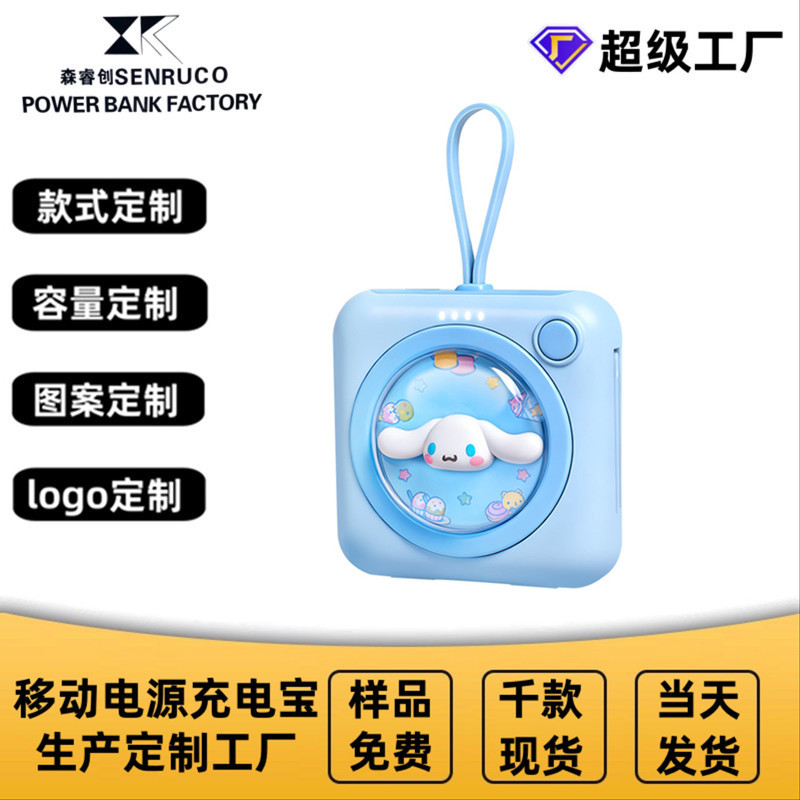 跨境自带线充电宝卡通迷你小巧可爱20000毫安便携式移动电源厂家