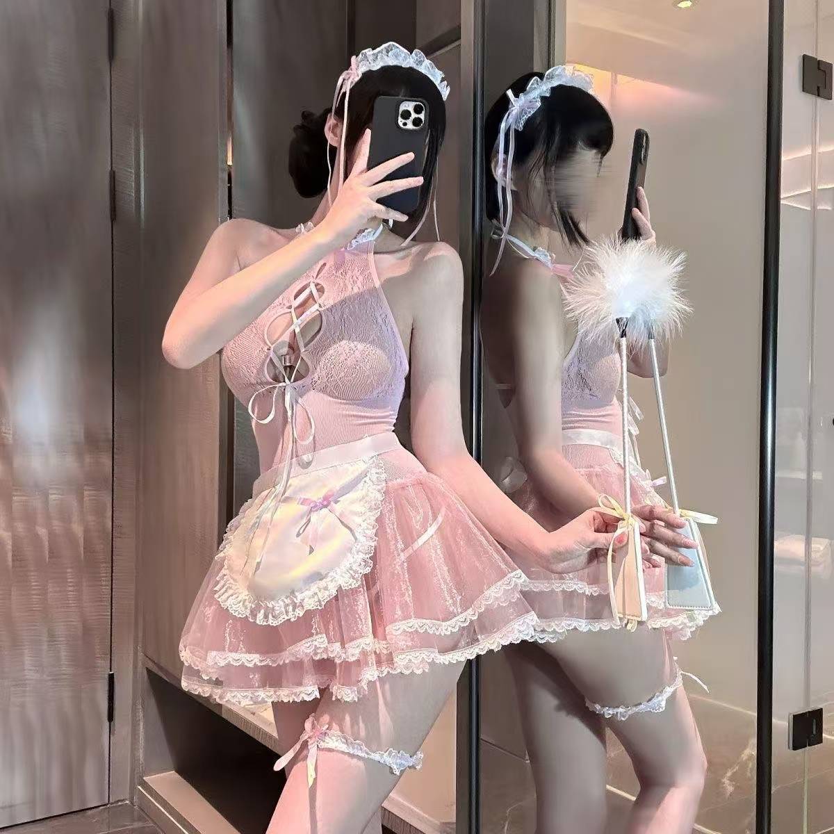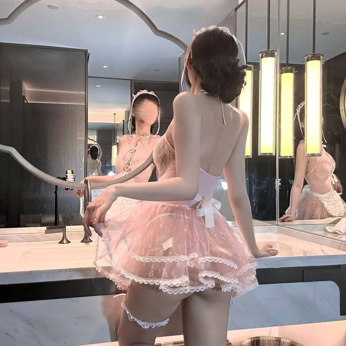 セクシーなシースルーホットメイド制服ストッキング誘惑中空情熱脱げない純粋な欲望セクシーな下着レースパジャマ