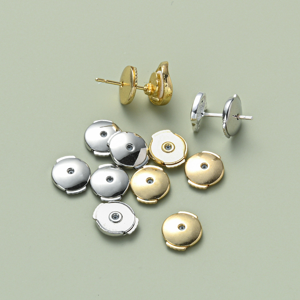 18K色保持旋盤加工弾丸型耳栓 高級ファッションメタル製 落下防止シリコン製イヤリングキャップ