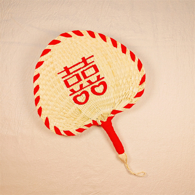 新婦の朝の服は喜扇の手を照らして扇の芭蕉の扇の朝の道具の手を揺らして蒲扇の喜字の刺繍の字を持って扇子を編みます。