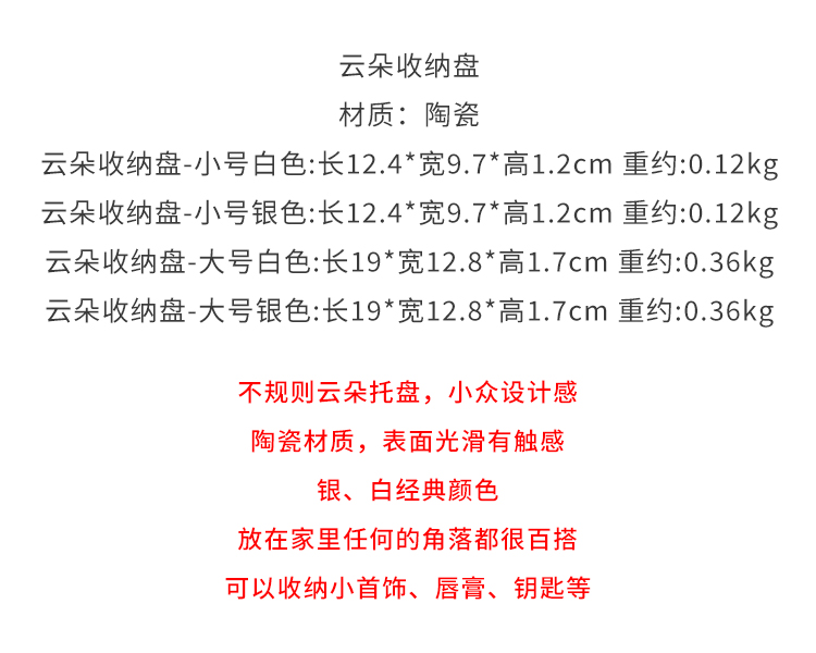 ✅ セラミッククラウド収納トレイジュエリーアロマディスプレイ収納トレイ玄関キー収納ディスプレイ