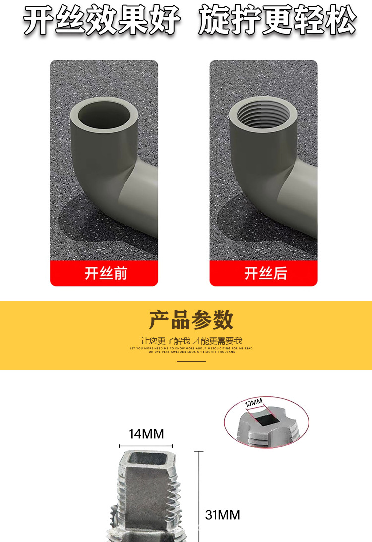 跨境新款水管内外丝一体开丝器4分6分PPR螺纹攻丝锥板牙冷镦工艺