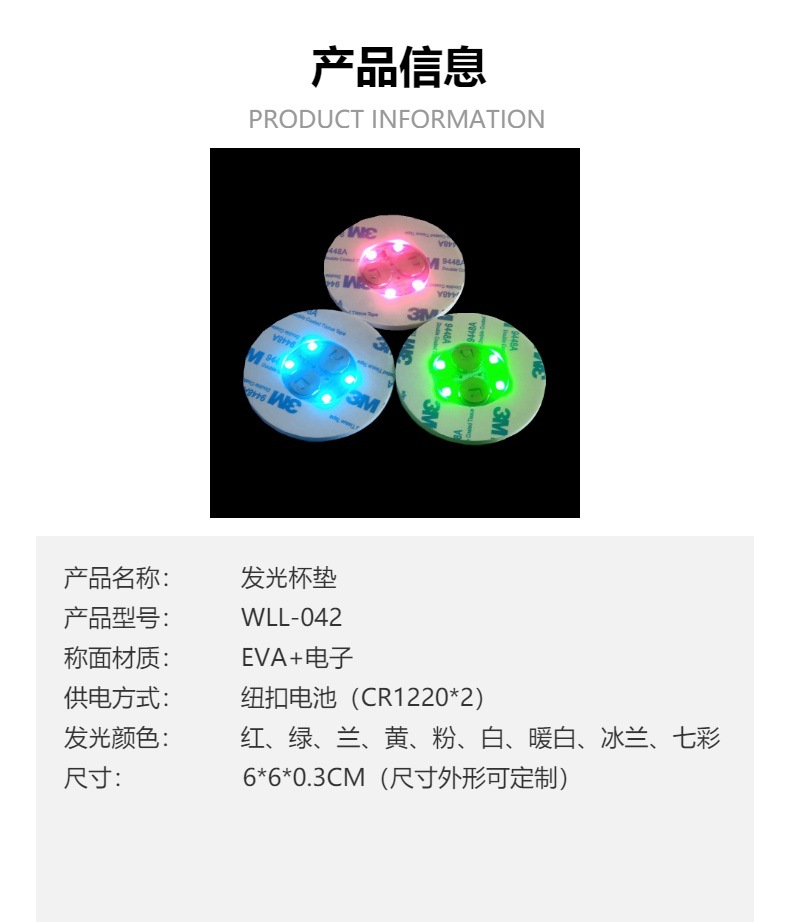 工厂包邮发光杯垫飘空球贴酒吧杯贴鸡尾酒灯摆摊奶茶EVA发光杯垫