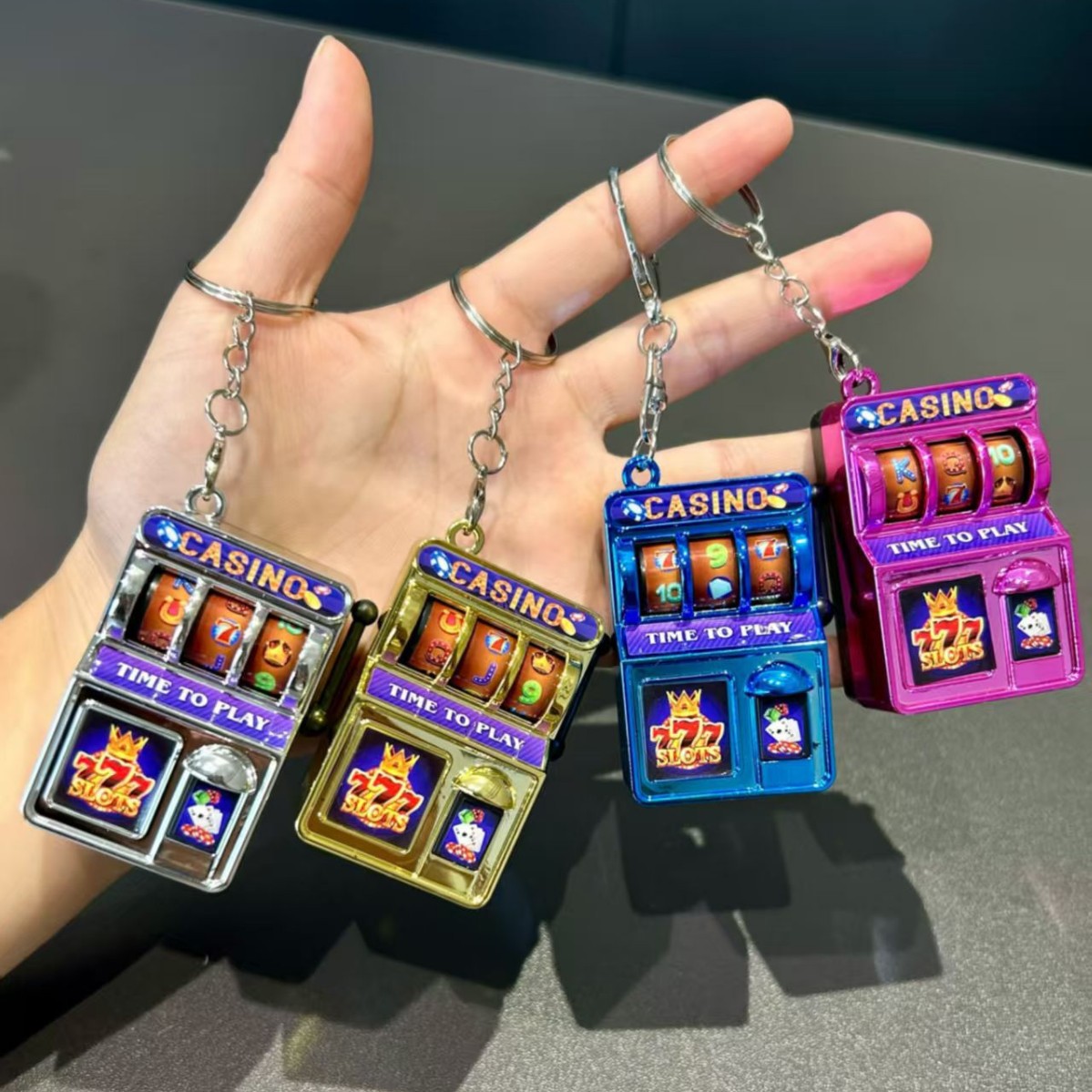 777 漫画減圧フルーツマシンシェーカーキーホルダーペンダントスピンマシンゲームタイガースロットマシン小物