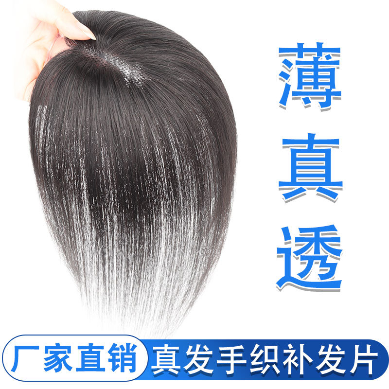 女性用ヘアピース、頭頂部用、軽量、白髪隠し、増毛、ボリュームアップ、人毛、高頭頂部用ワンピースヘアピース