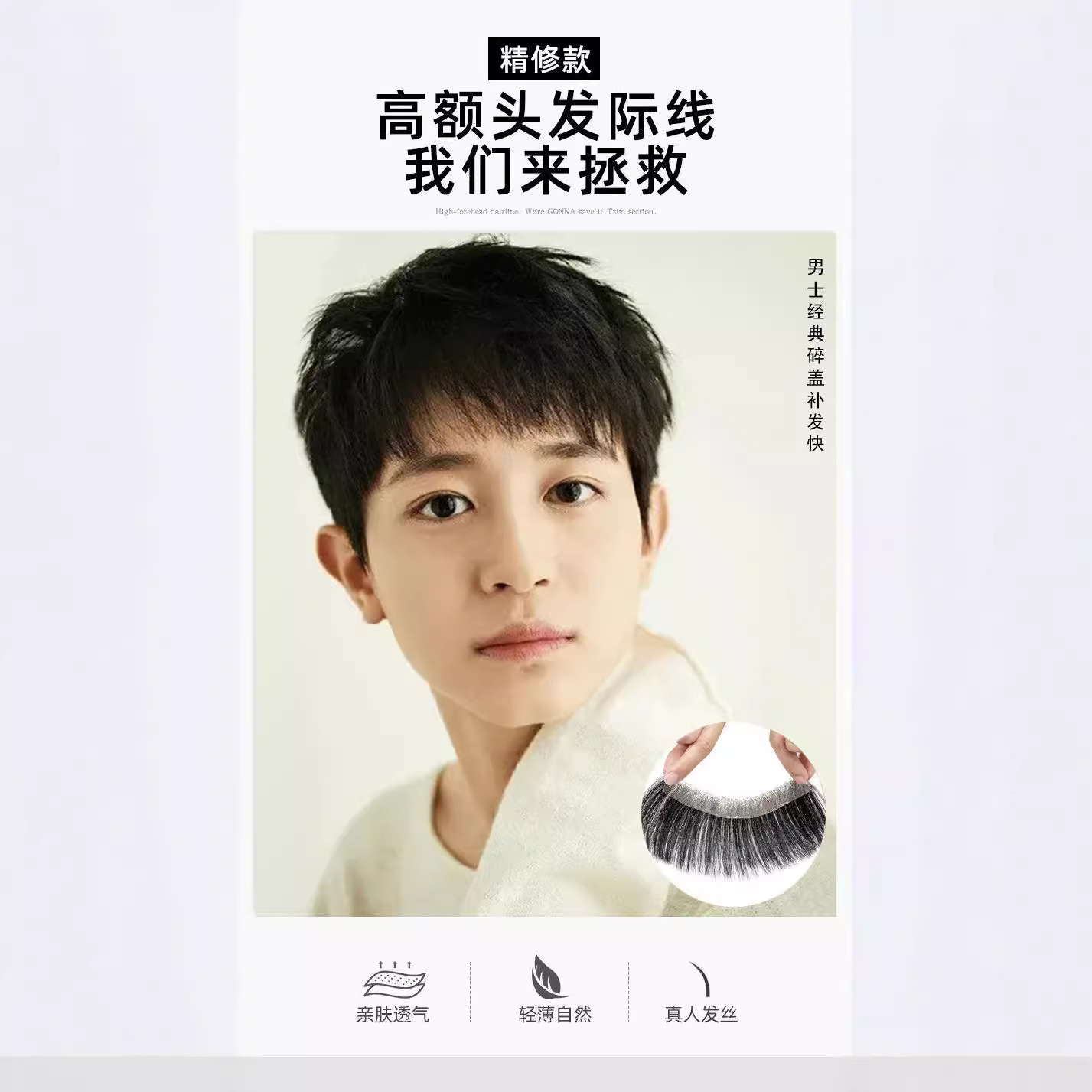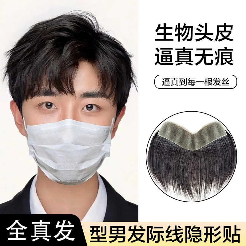 かつら男短髪ヘアライン男性かつら額ハゲ再髪塊ステルス無痕生物頭皮偽前髪