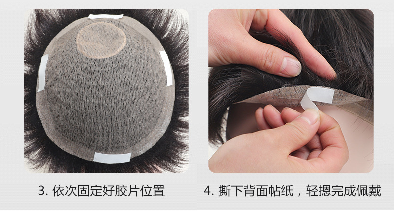 ヘアラインのかつらは男性の本物の髪のm型の額を貼ります。