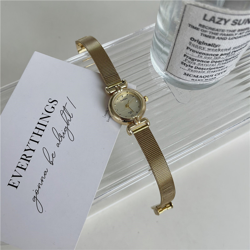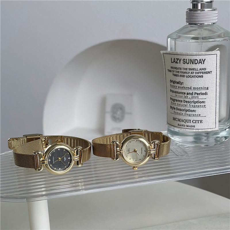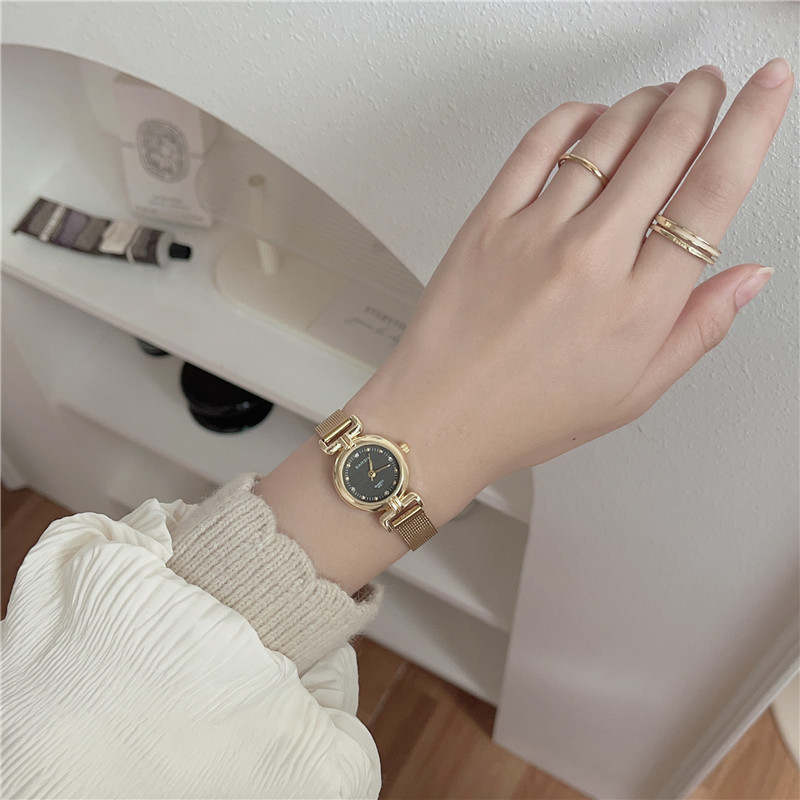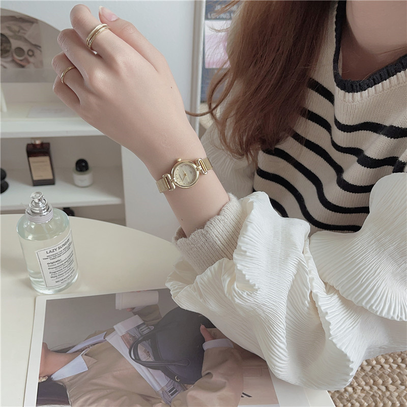 女性用ゴールデンレトロブレスレットウォッチ、ミッドセンチュリースタイル、小さくて絶妙、エレガント、シンプル、ニッチな気質、ファッショナブルで多用途、軽い高級感