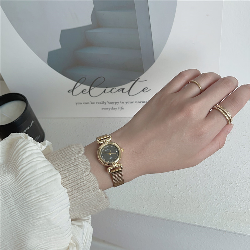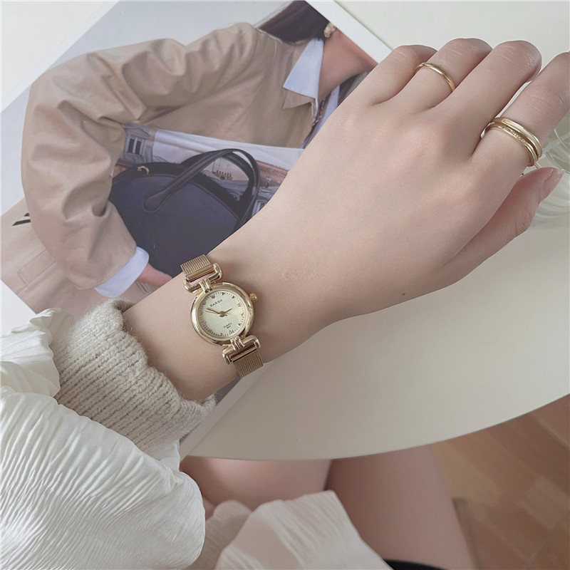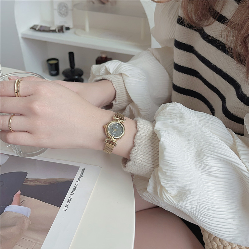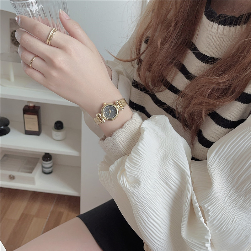 女子学生向け腕時計、韓国版、シンプル、コンパクト、小さな文字盤、レトロな細いベルト、多用途、ガールフレンド、カジュアルクォーツ時計、トレンディ