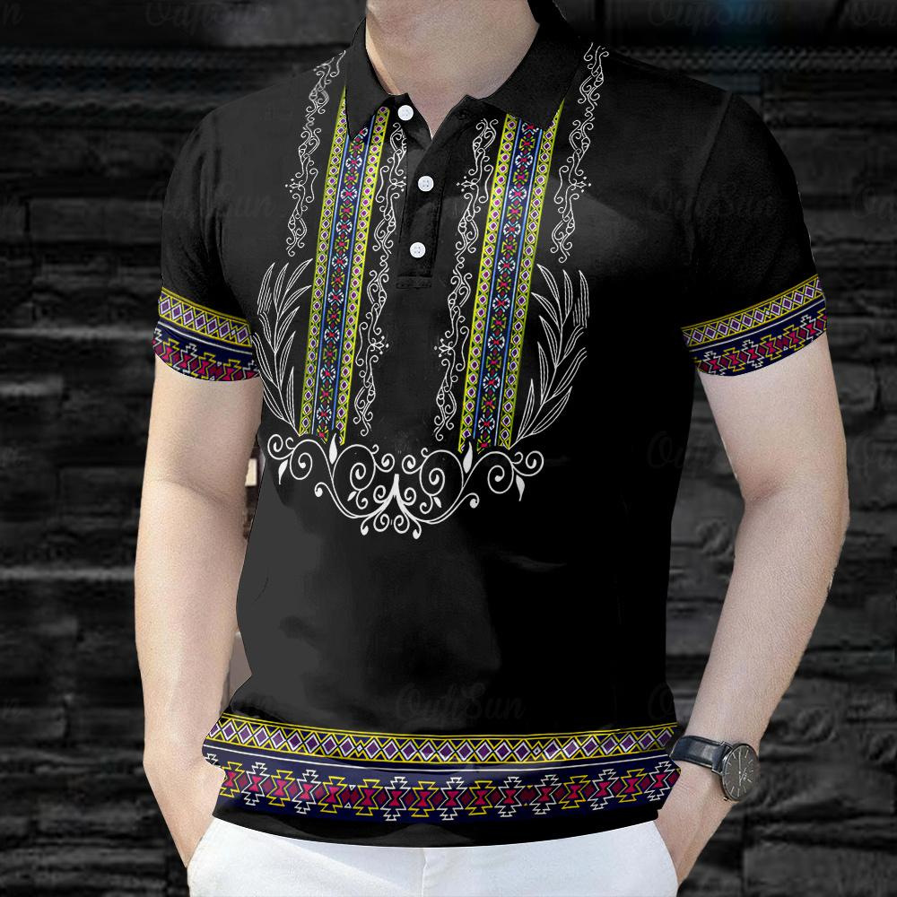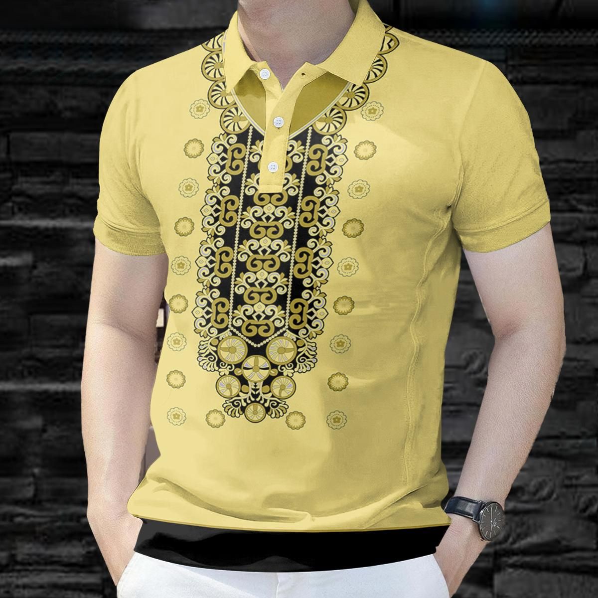 新しい夏のヨーロッパとアメリカの紳士服レトロパターンデジタル印刷トレンディなトップスメンズラペル半袖ポロシャツ