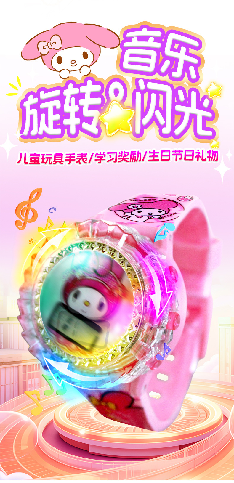 儿童玩具滑盖卡通音乐电子手表男女孩玩具手表库洛米同款礼物