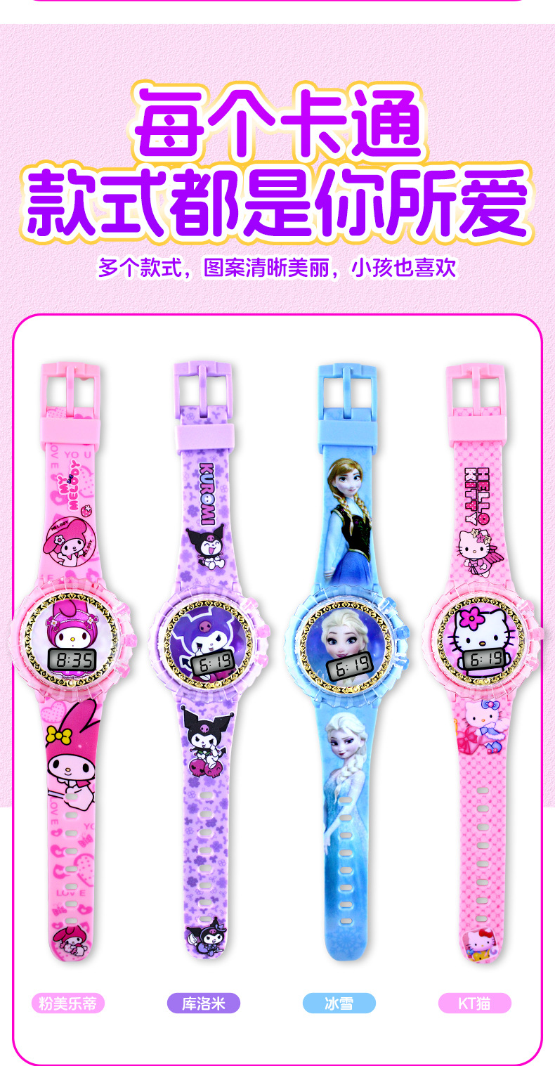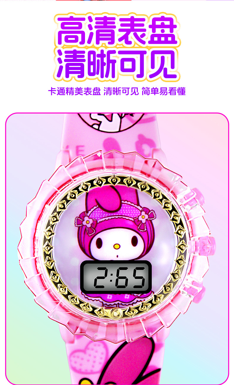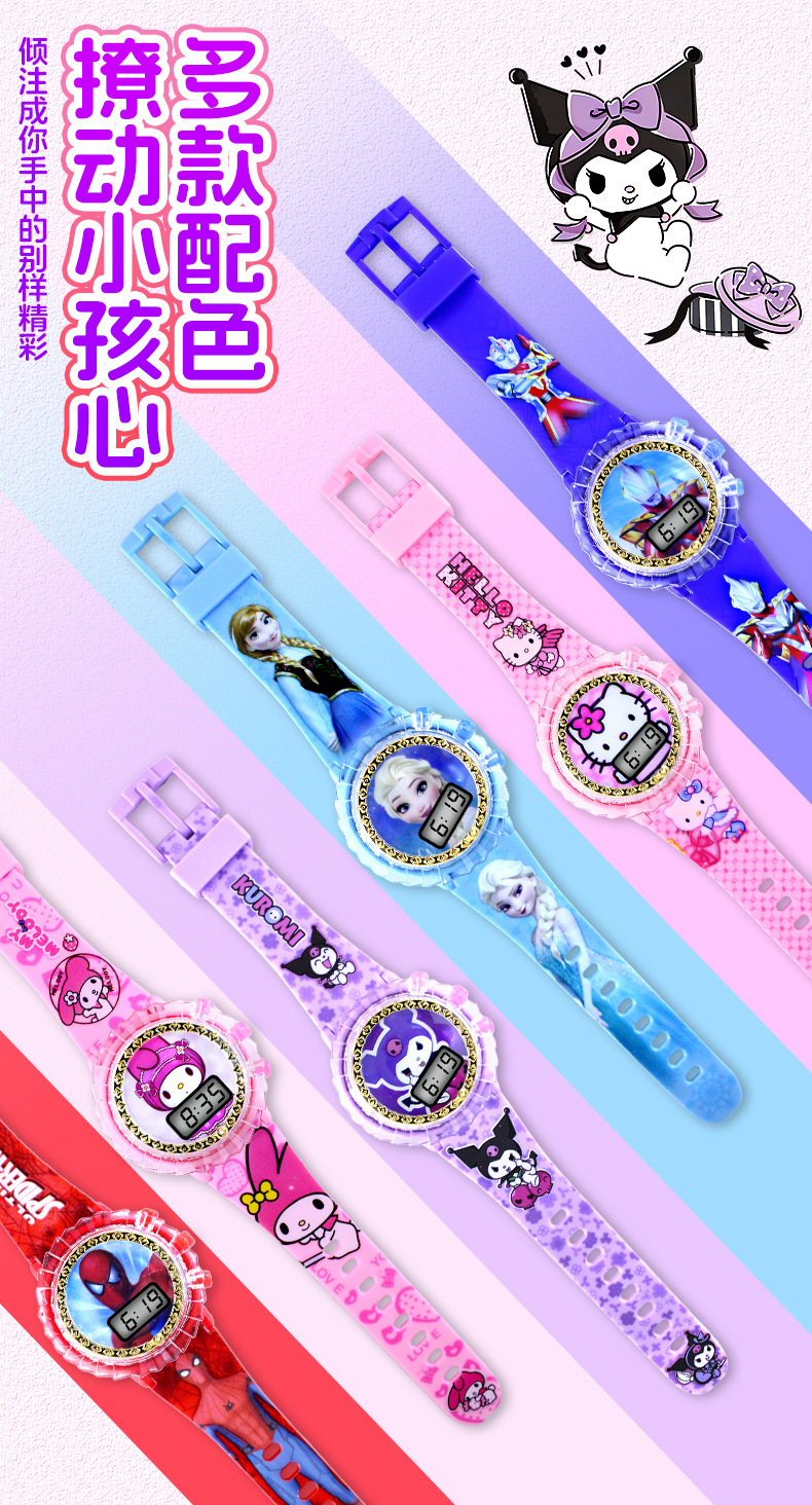 サンリオ漫画子供用腕時計音楽発光電子時計点滅ライト投影おもちゃ男の子と女の子幼稚園ギフト