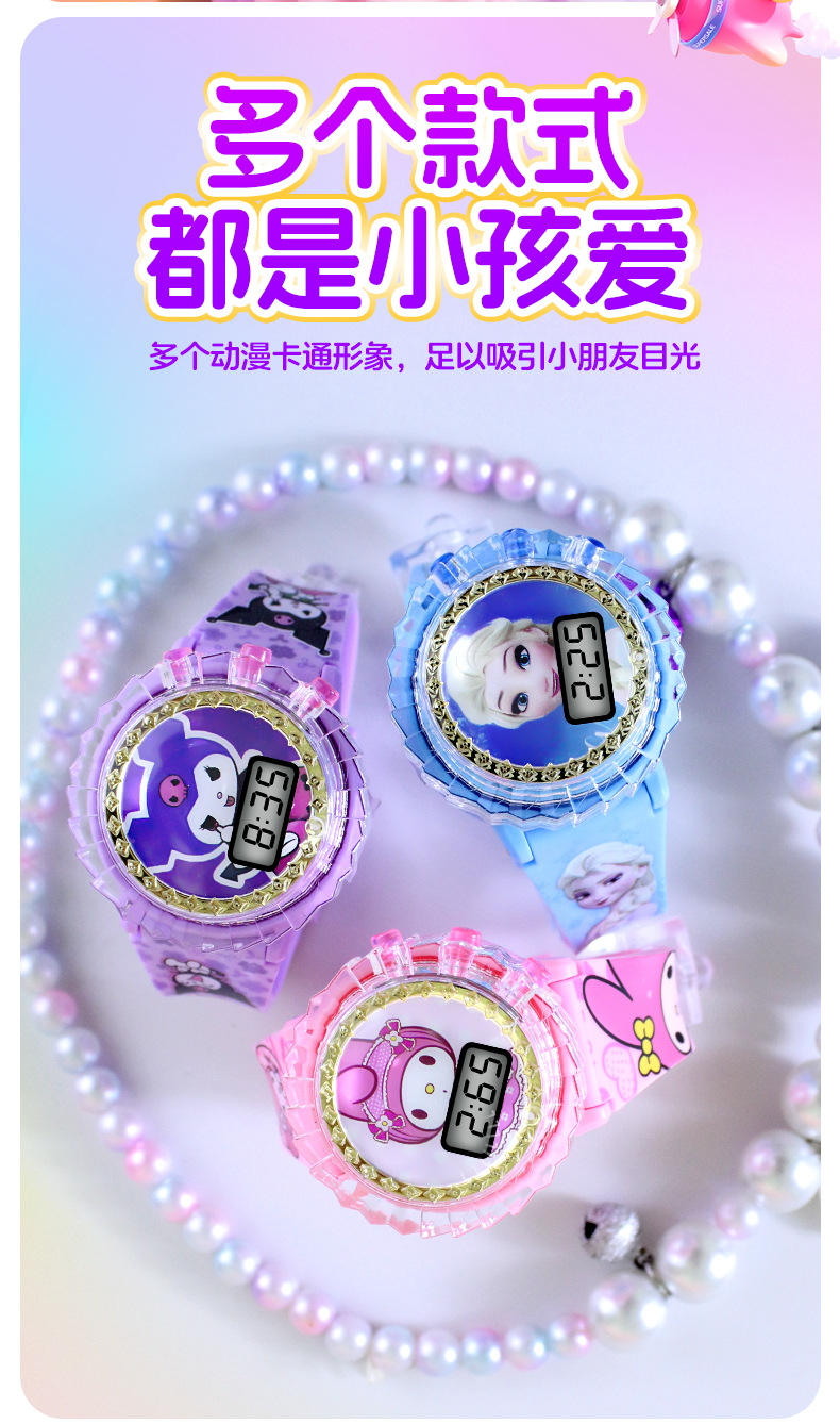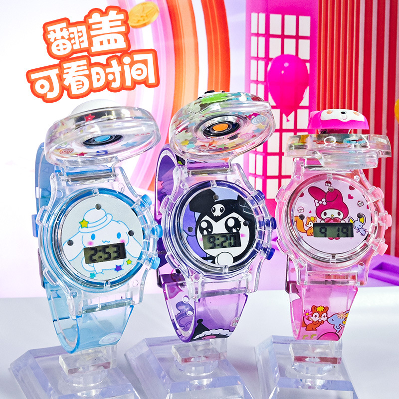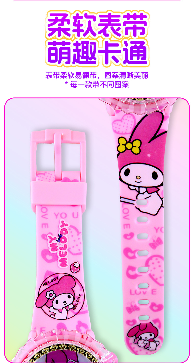 サンリオ漫画子供用腕時計音楽発光電子時計点滅ライト投影おもちゃ男の子と女の子幼稚園ギフト