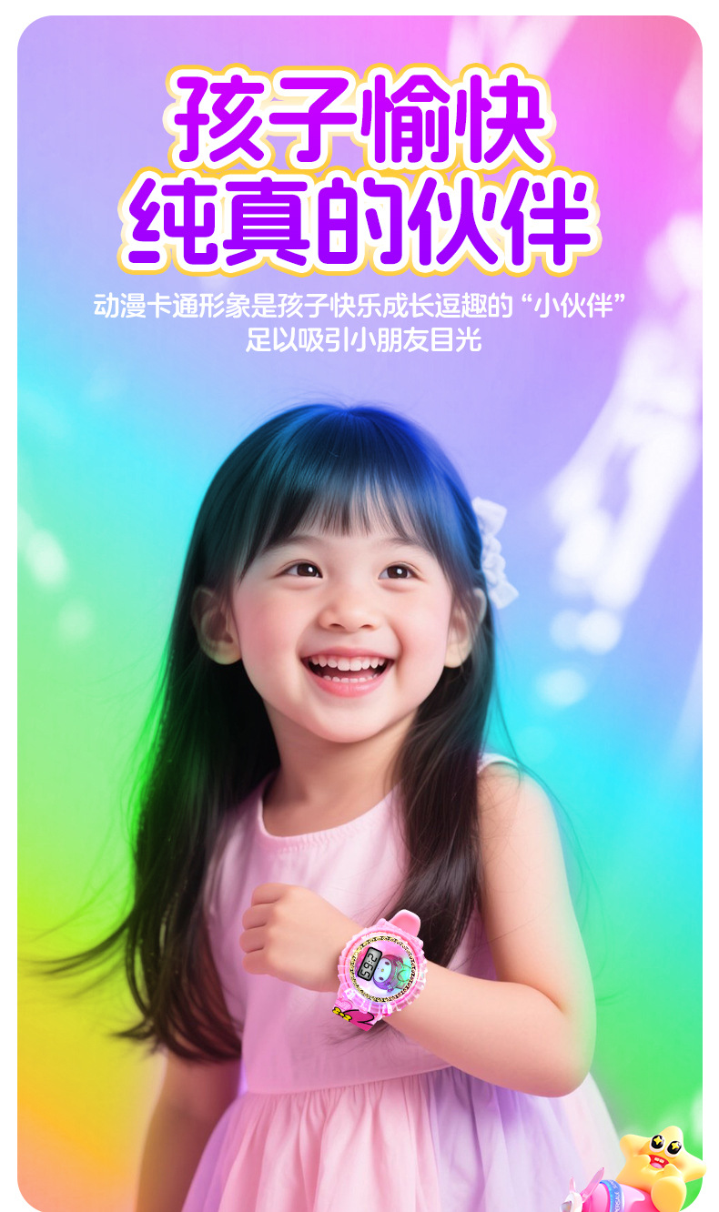 三麗欧子供投影腕時計2024新出玩具幼児女の子可爱莎姫発光早教アニメ